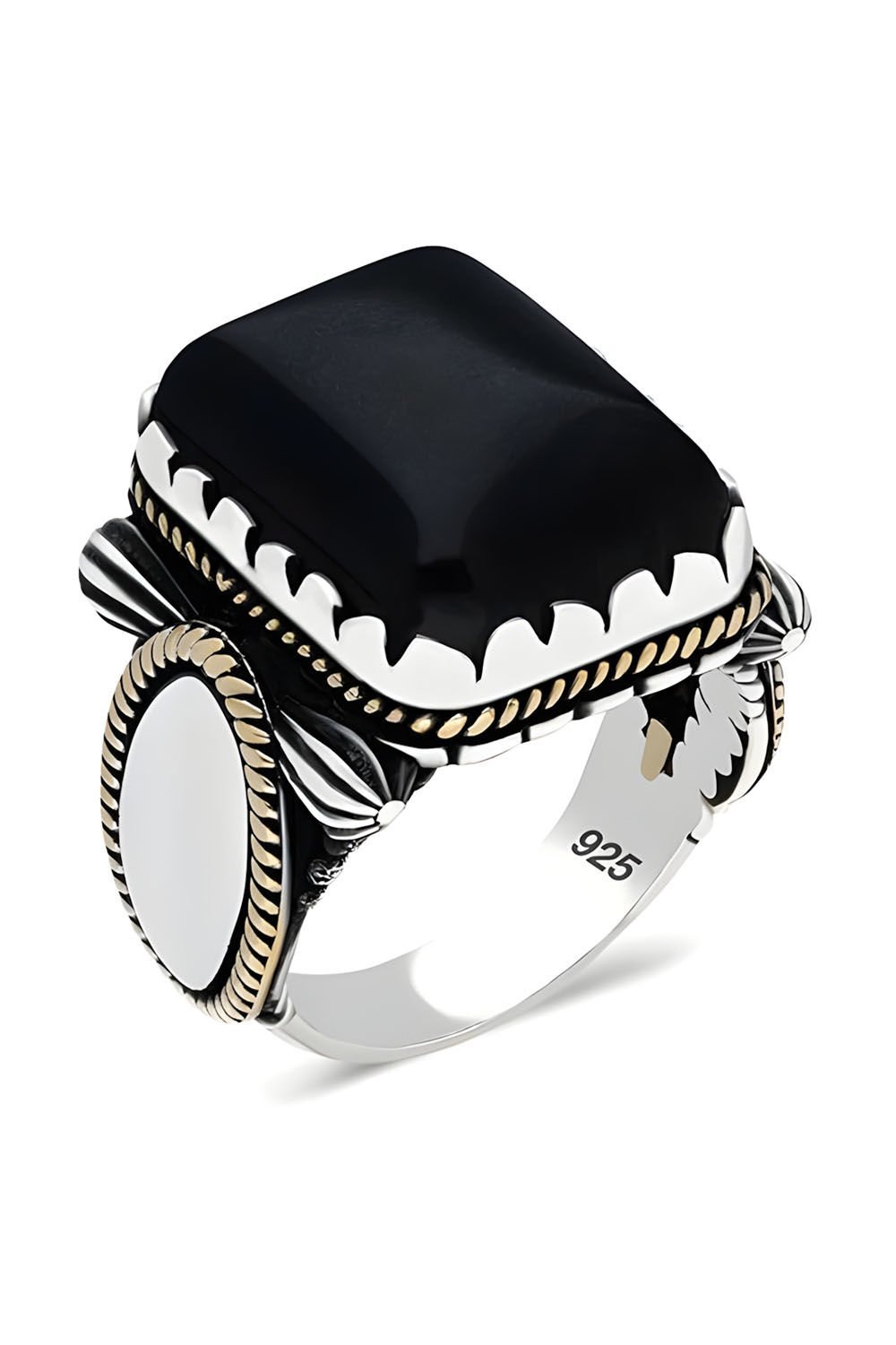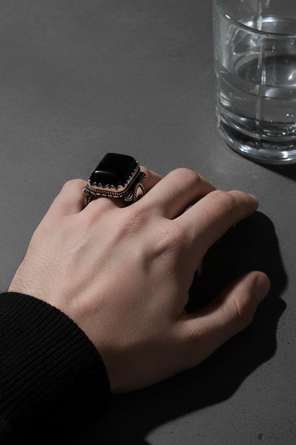 Bu özel erkek yüzük, doğal oniks taşı ve el işçiliği ile 925 ayar gümüşten üretilmiştir. Her detayı özenle işlenmiş olan bu yüzük, şıklığı ve zarafeti bir araya getirir.