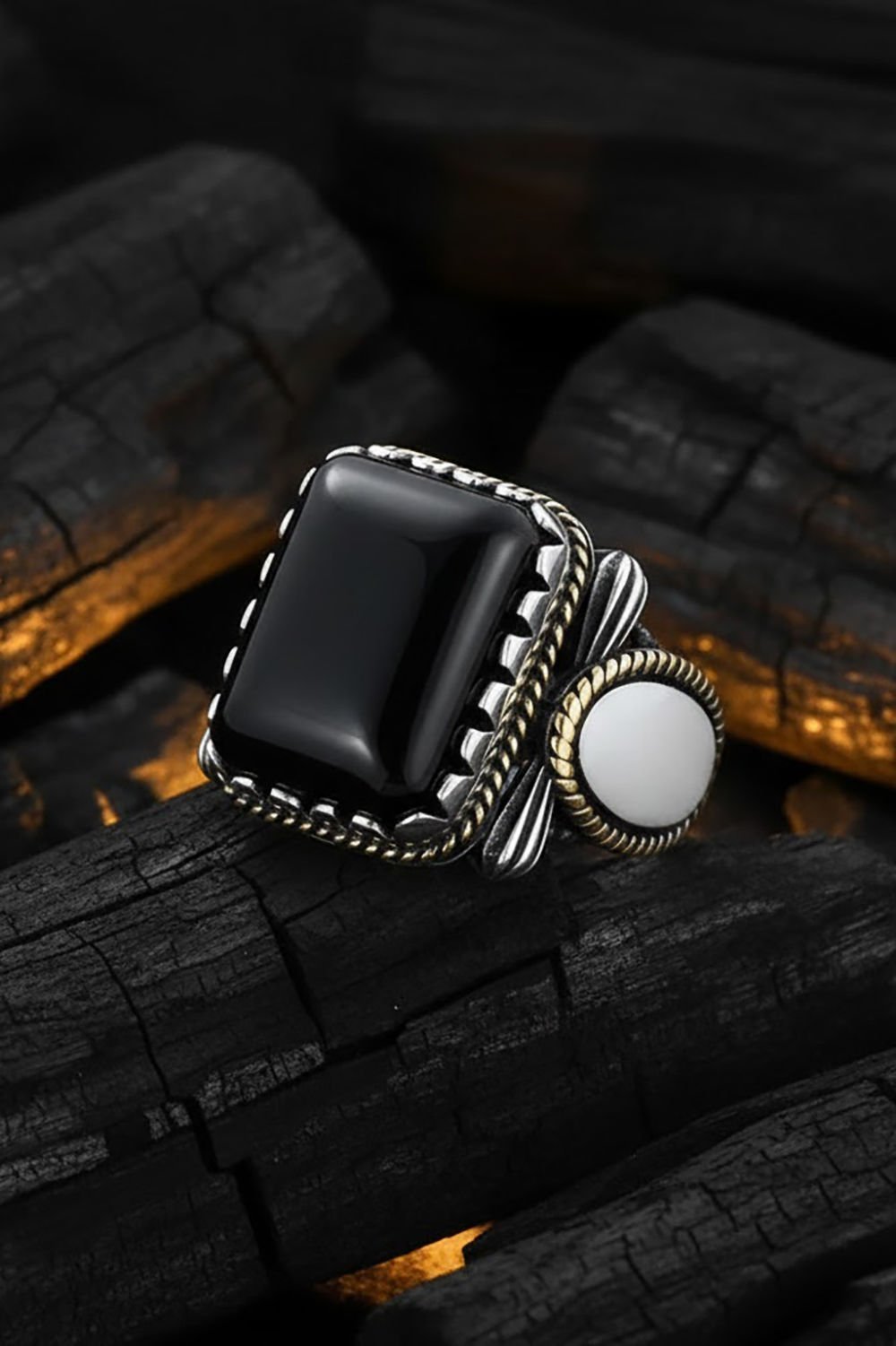 Natural Oniks Taşlı El İşçiliği Erkek Yüzük