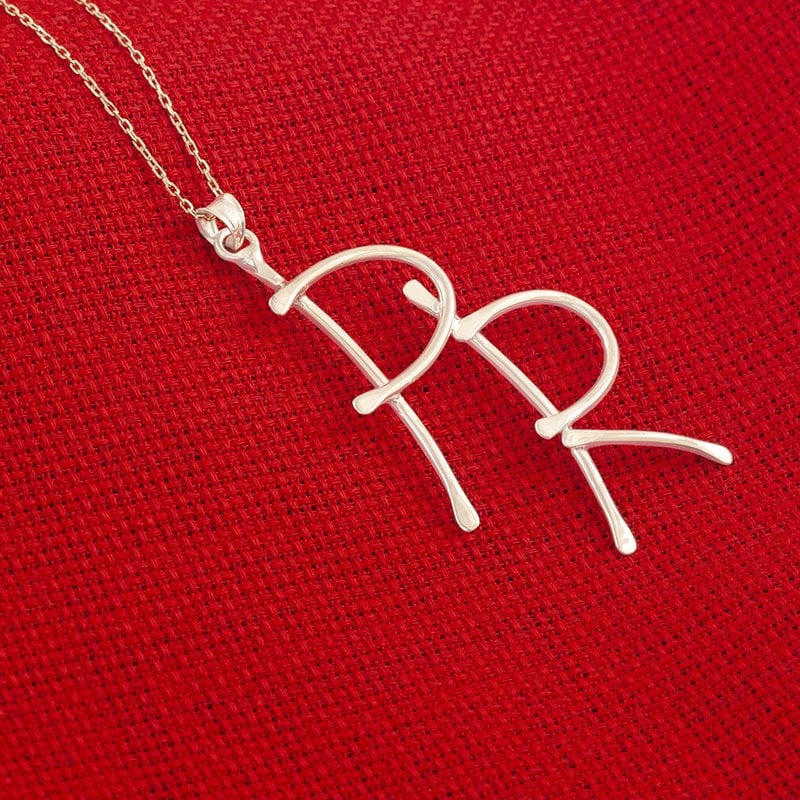 Kişiye Özel Çift Harfli El İşi Gümüş Kolye
