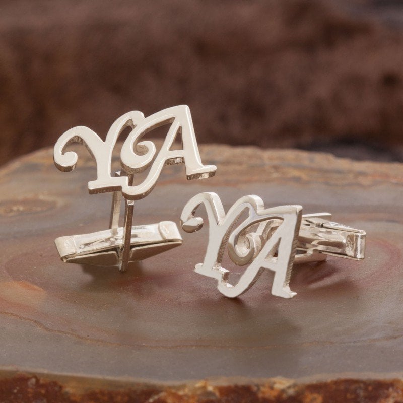 Kişiye Özel Çift Harfli Gümüş Kol Düğmesi |