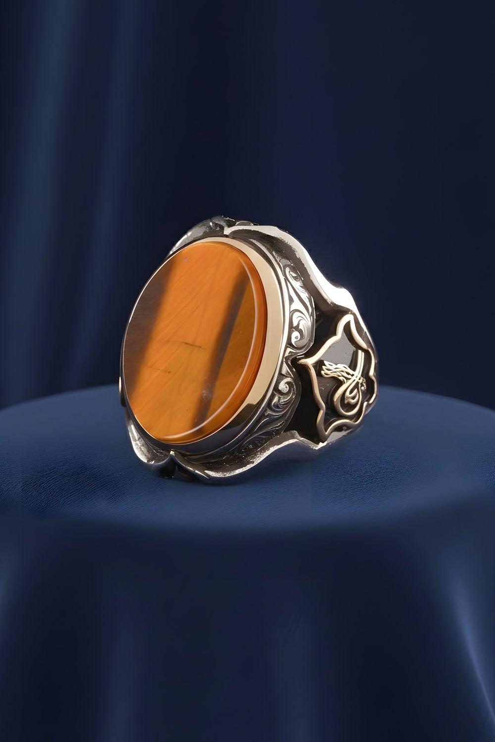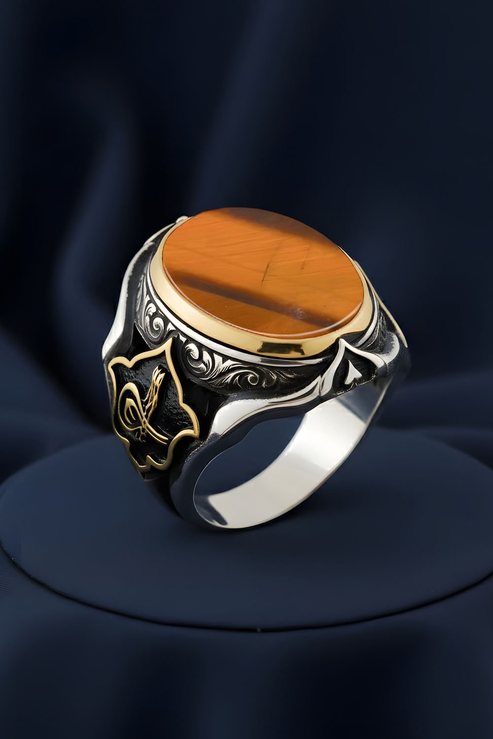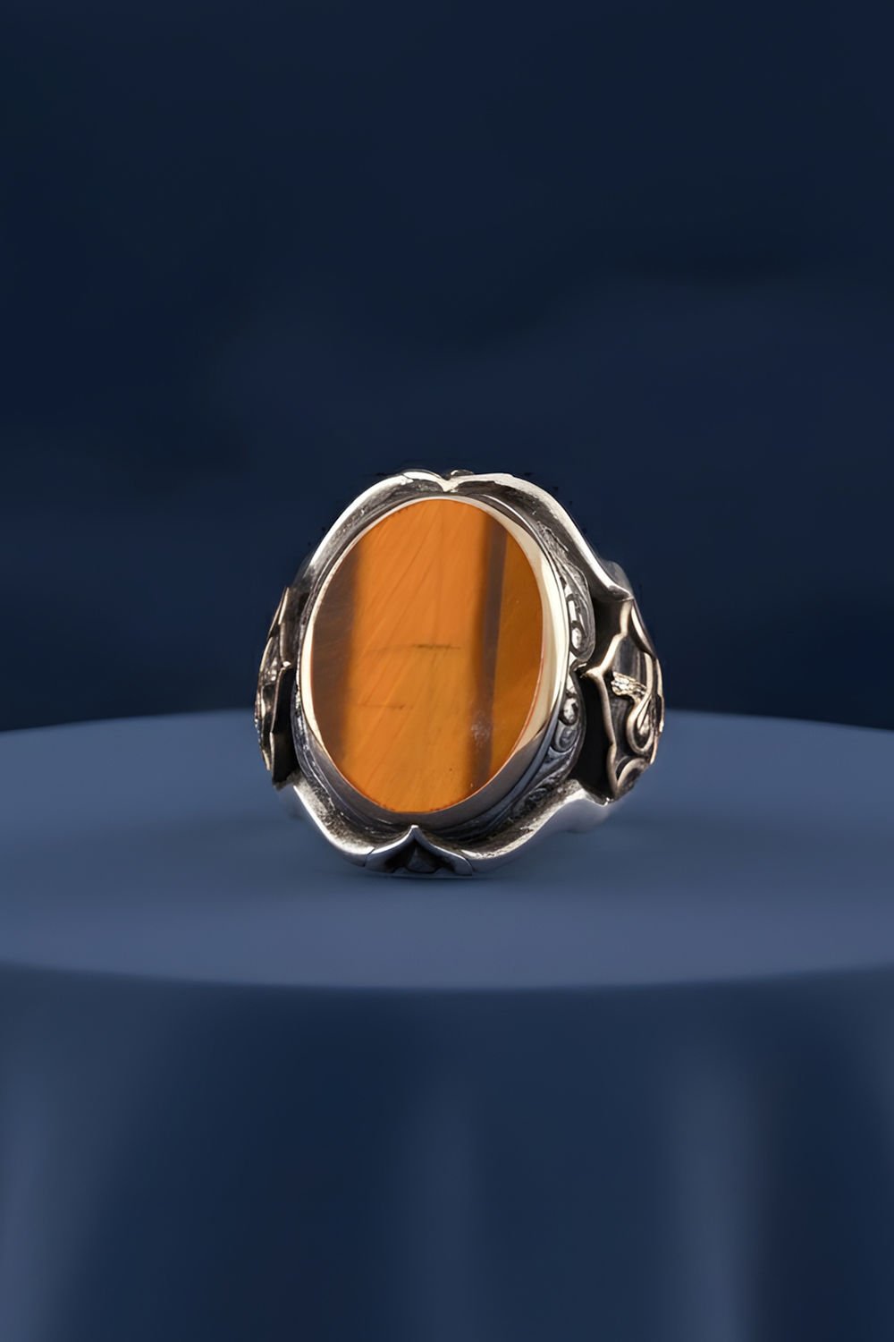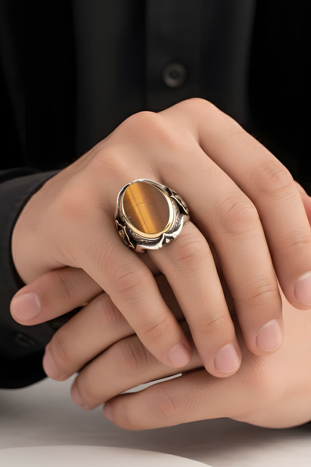 Hakiki ve orijinal doğal taşlar kullandığımız yüzüklerin bu modelinde Kaplangözü taşını kullanıyoruz.