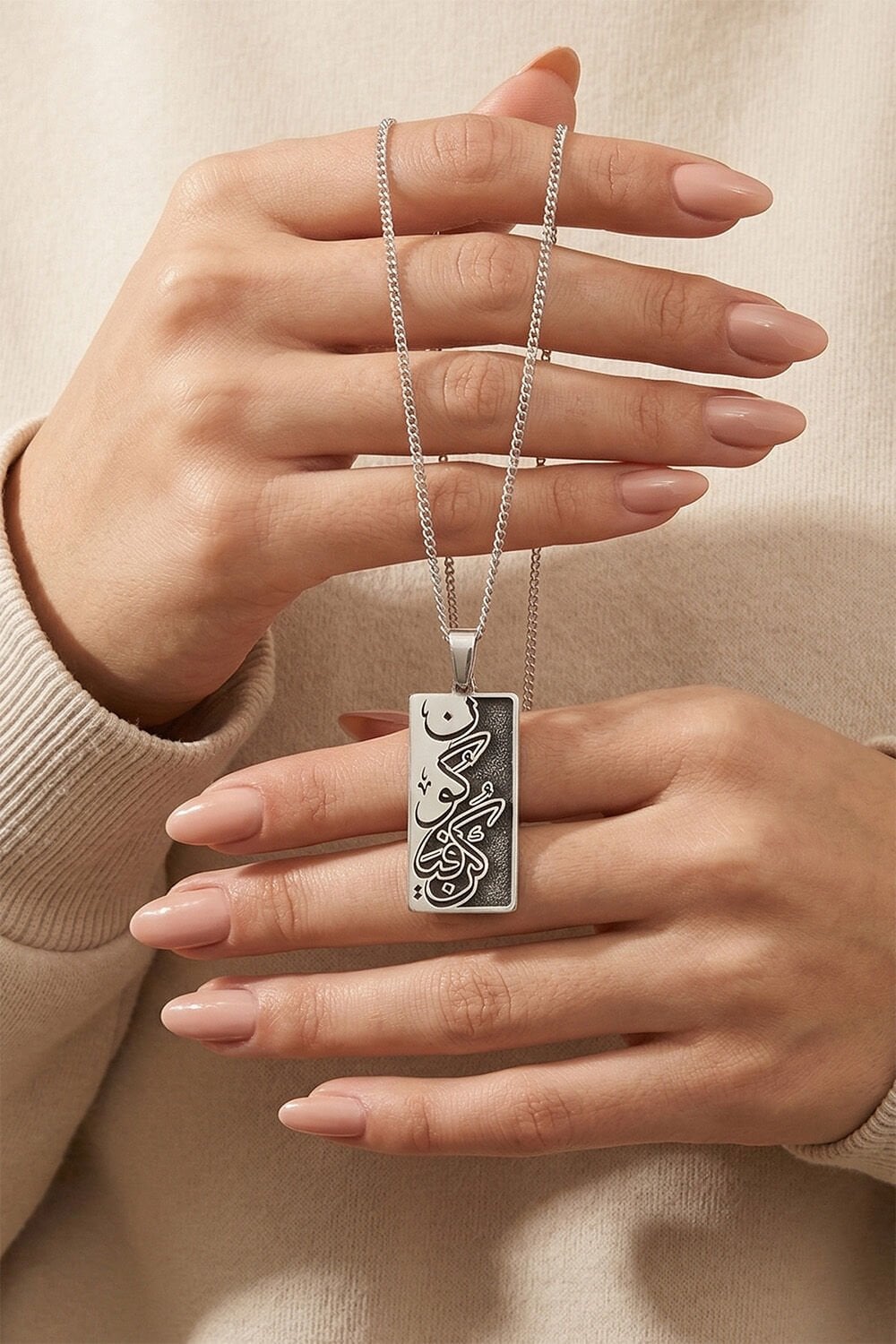 925 Ayar Gümüş Kun Fe Yekun (Ol Der ve Olur) Yazılı Unisex Kolye