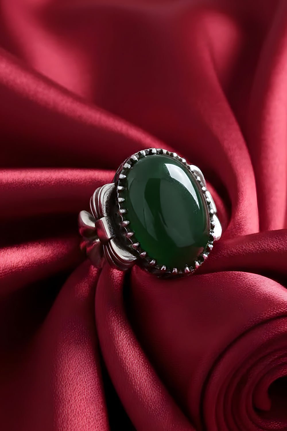 Eğer kendinizi özel hissetmek ve doğanın canlılığını stilinize yansıtmak istiyorsanız, bu natural yeşil akik taşlı, 925 ayar gümüş yüzüğü kurdele modeli ile hemen keşfedin. Her parmak hareketinizde doğanın enerjisini ve zarafetini taşıyın.