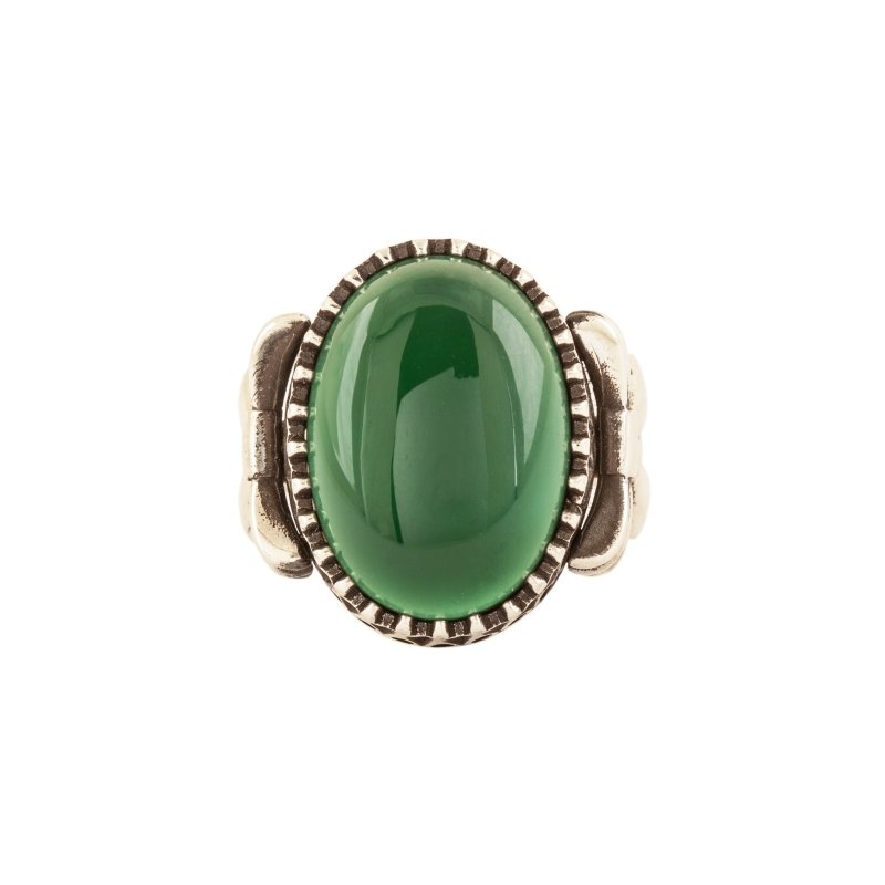 Kurdele Model Yeşil Akik Taşlı El İşi Gümüş Yüzük |
