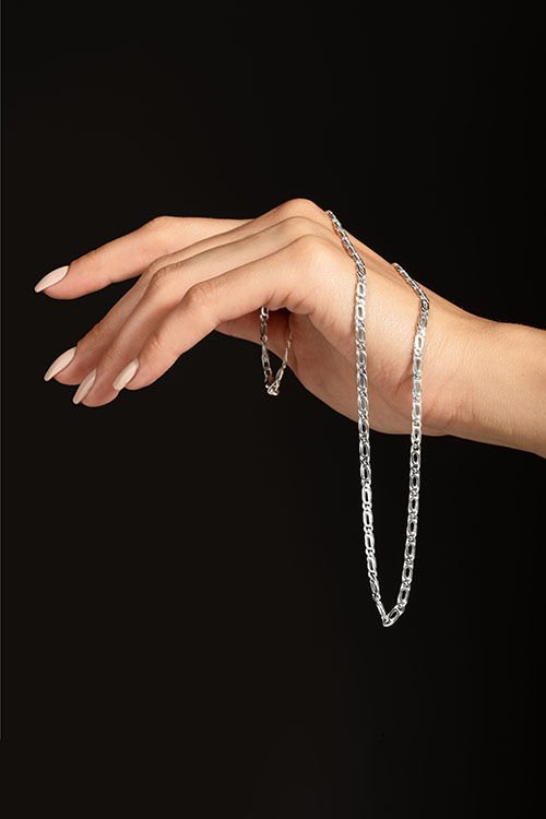 Farklı renklerde (silver, gold, rose) hazırlayabildiğimiz, klasik desenlere sahip gümüş zincir modelimiz. Zincir, 925 ayar gümüş ile imal edilmiştir. Sipariş verildikten sonra 1-2 iş günü içerisinde kargoya verilir.