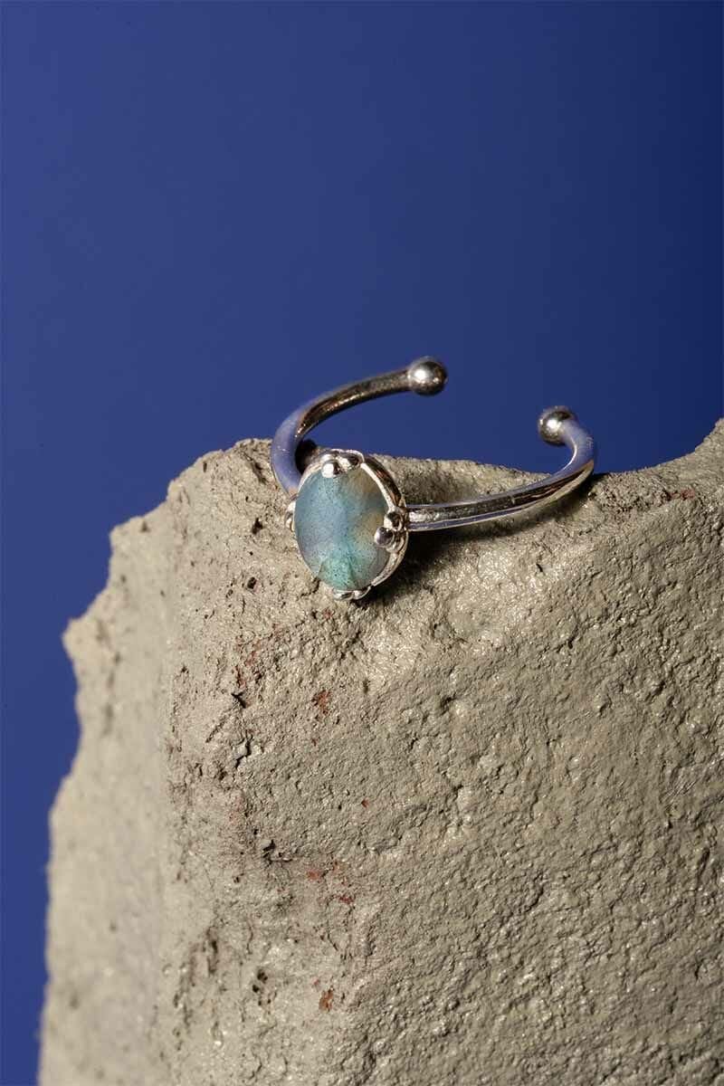 Labradorit Taşlı Minimal Gümüş Ayarlanabilir Kadın Yüzük