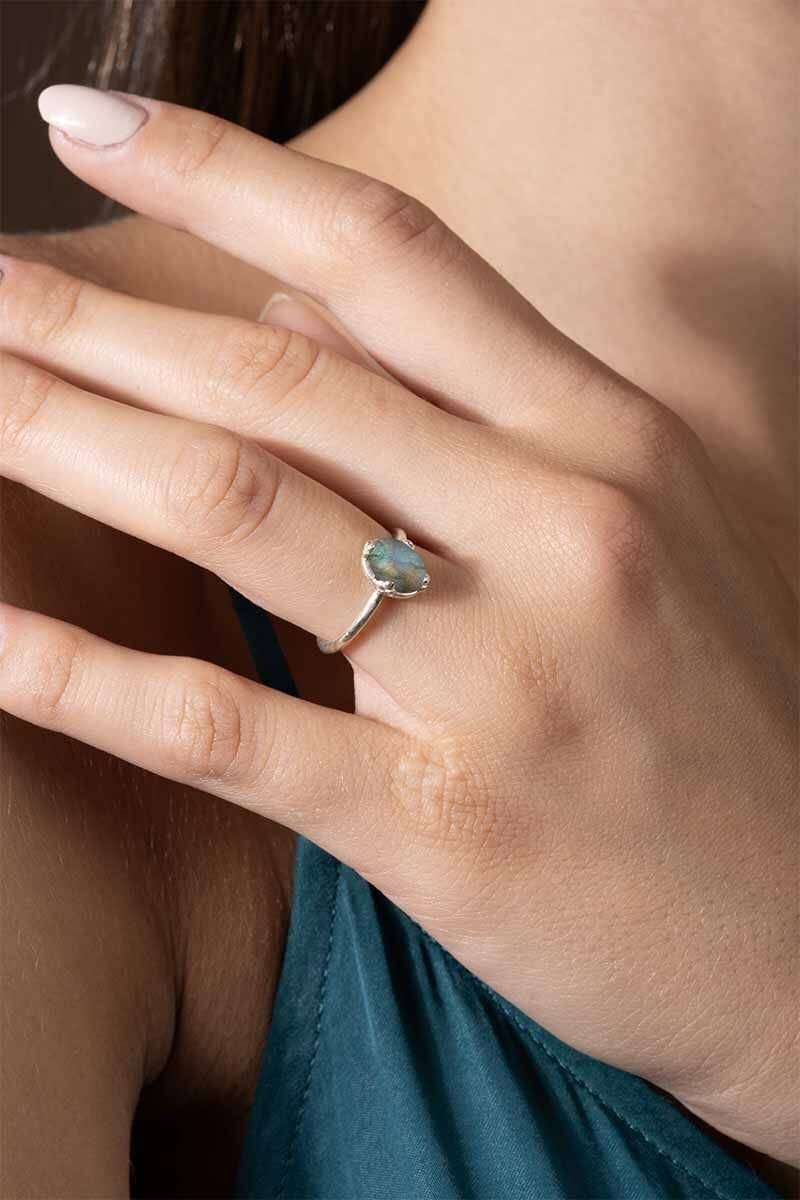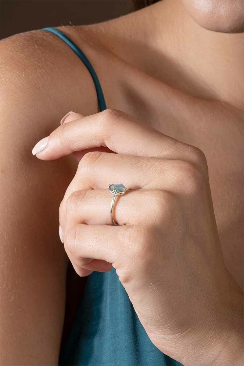 Labradorit Taşlı Minimal Gümüş Kadın Yüzük