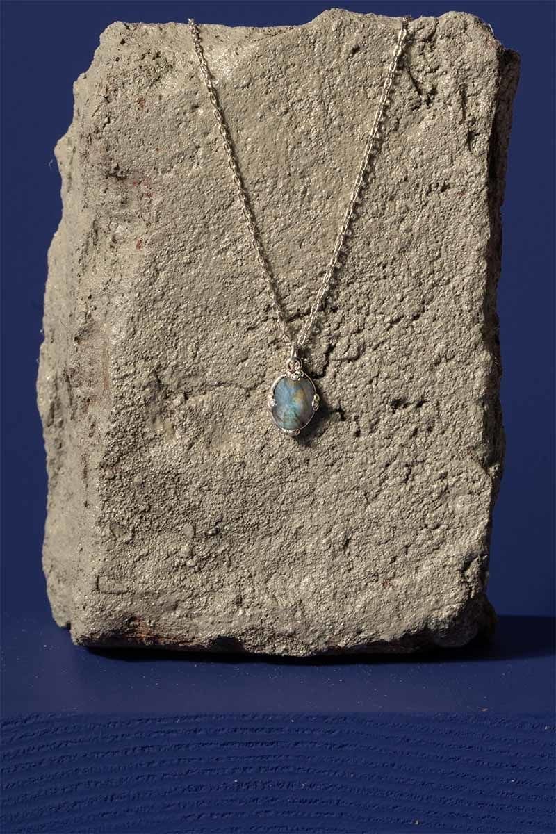 Bu özel kolye, zarif tasarımı ve doğal labradorit taşının çekici enerjisi ile sizi anlam katmak için tasarlandı. El işçiliği detayları, her bir kolyenin benzersiz olduğunu vurgularken, sade tasarımıyla da modern ve klasik tarzlara hitap ediyor.