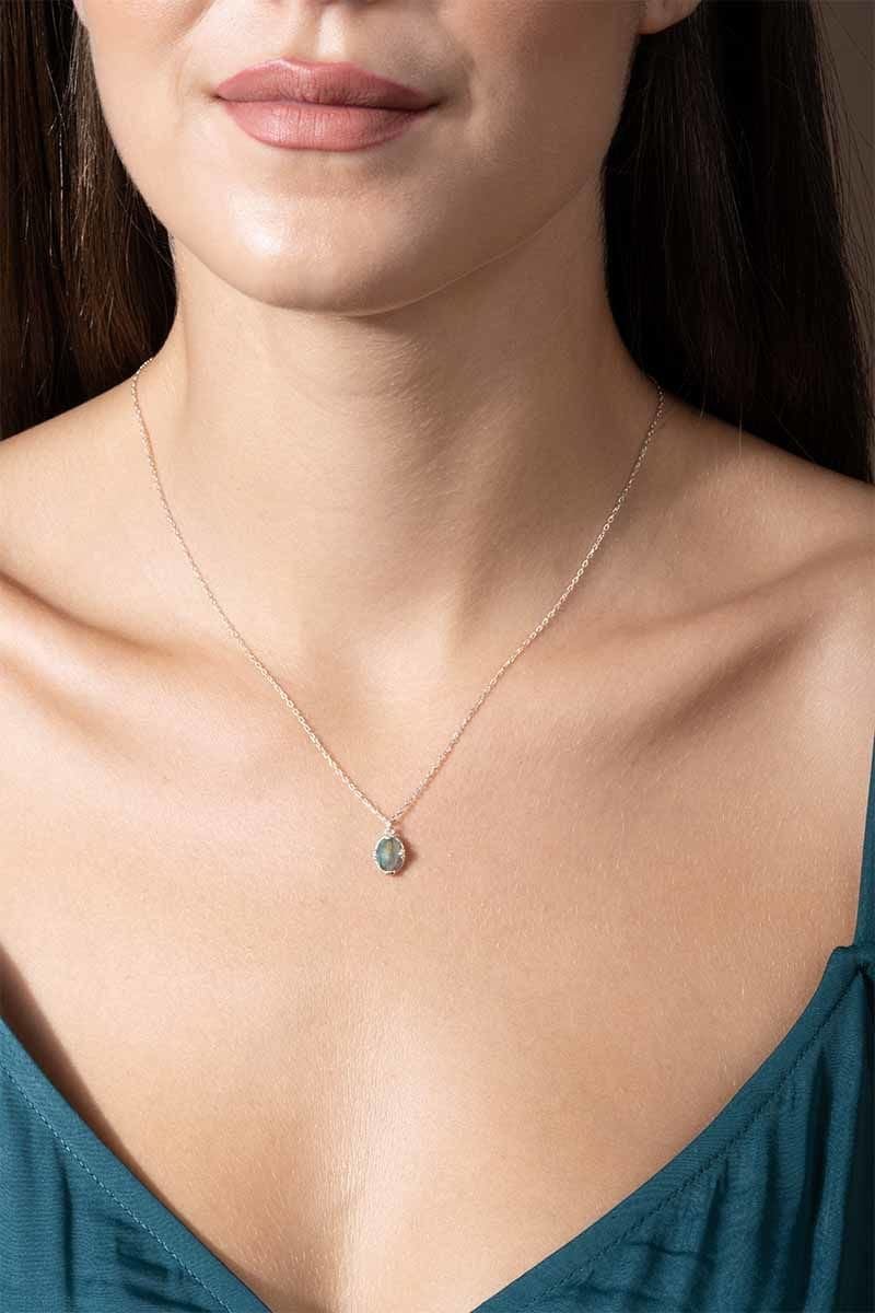 Labradorit Taşlı Minimal Gümüş Kadın Kolye