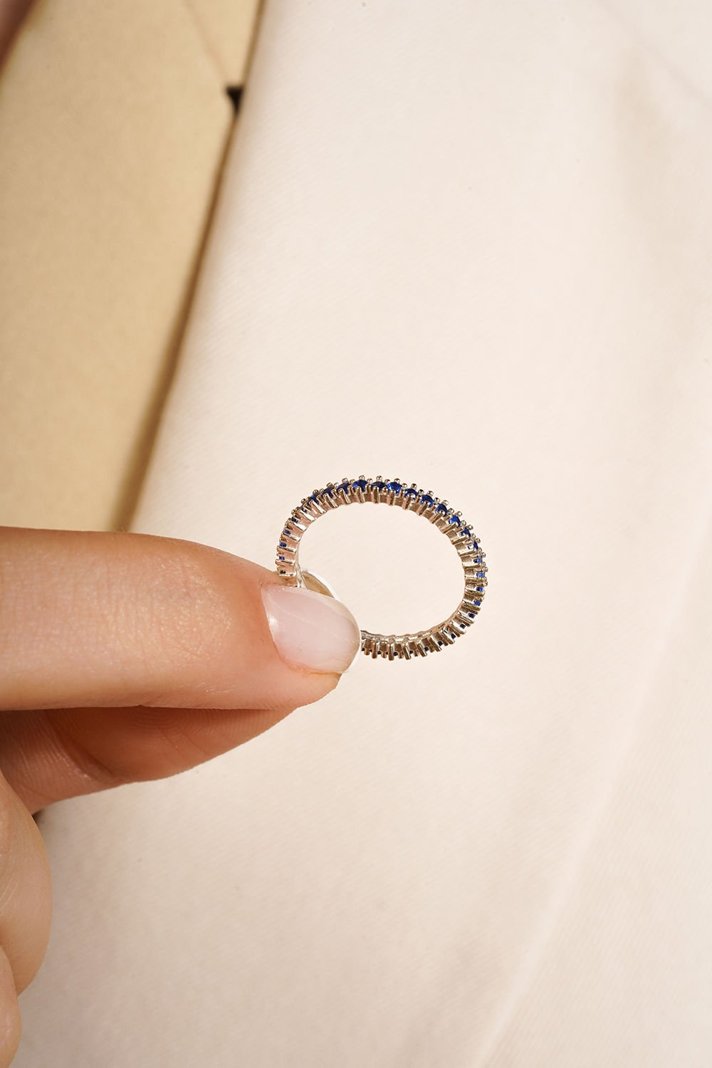 Lacivert Renk Zirkon Taşlı Tek Sıra Tamtur Yüzük