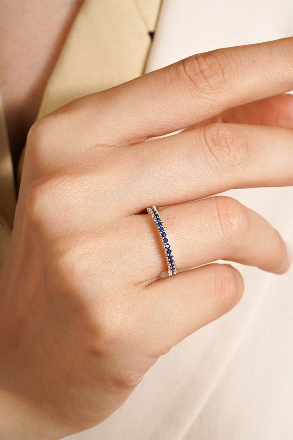Lacivert Renk Zirkon Taşlı Tek Sıra Tamtur Yüzük |