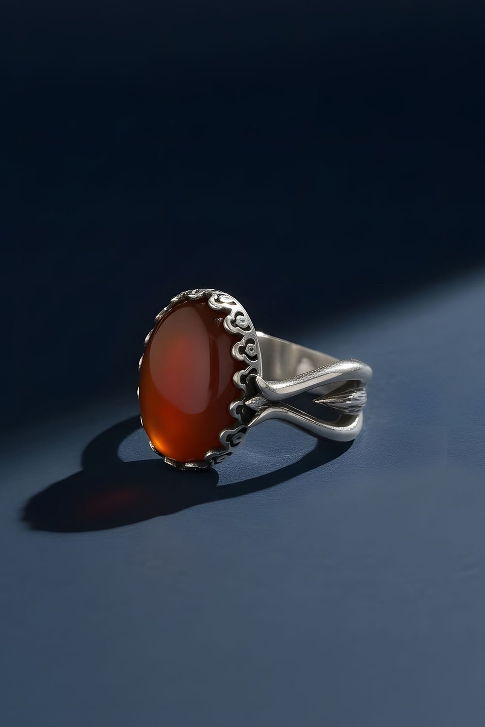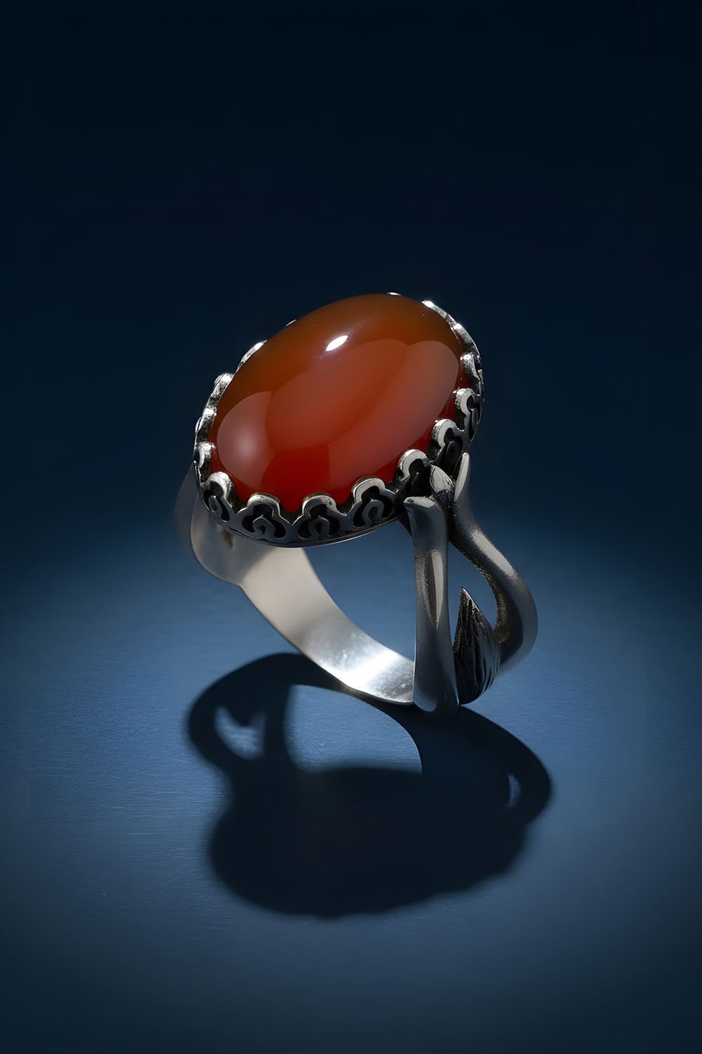 Lale Model Akik Taşlı El İşi Gümüş Yüzük