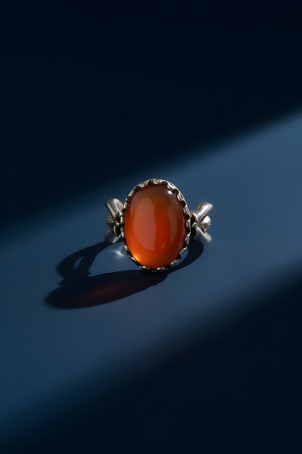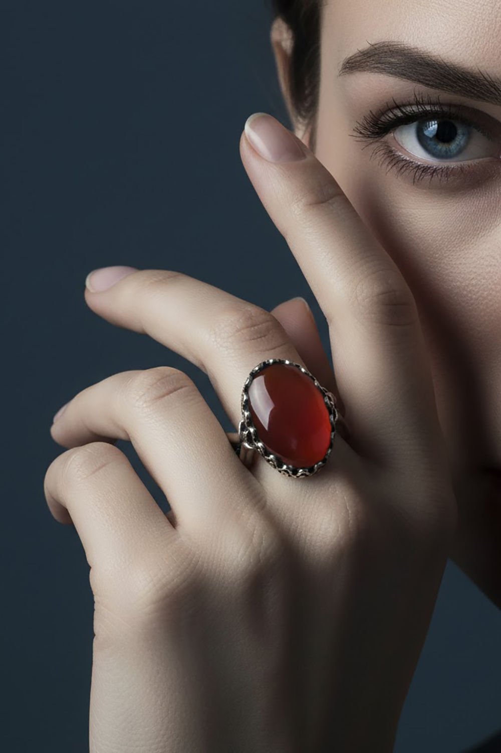 Lale Model Akik Taşlı El İşi Gümüş Yüzük |