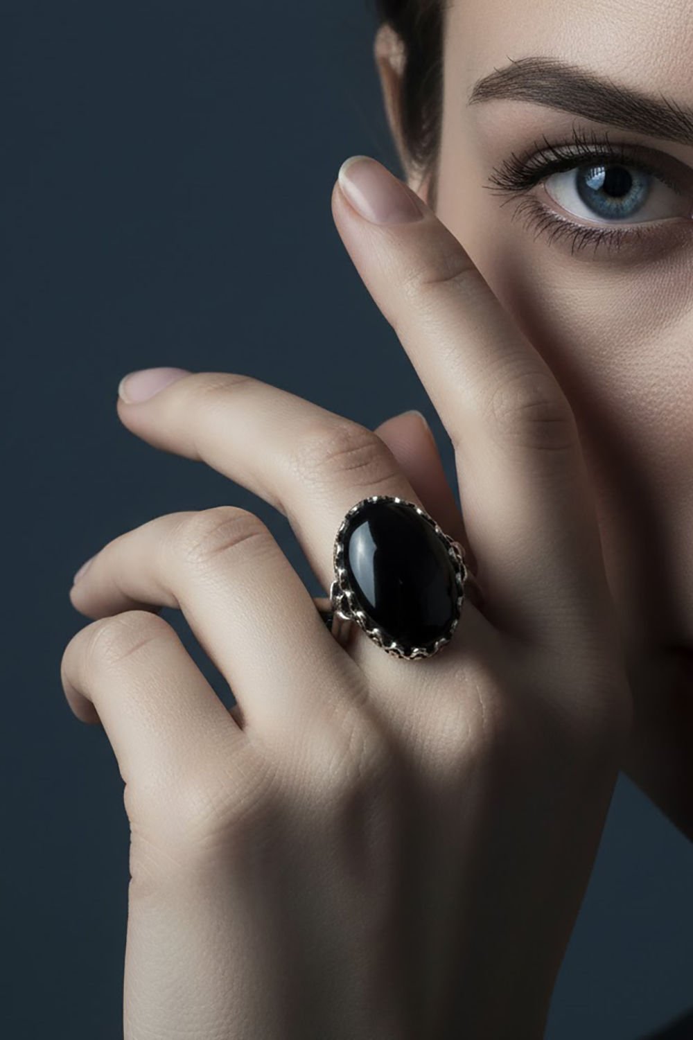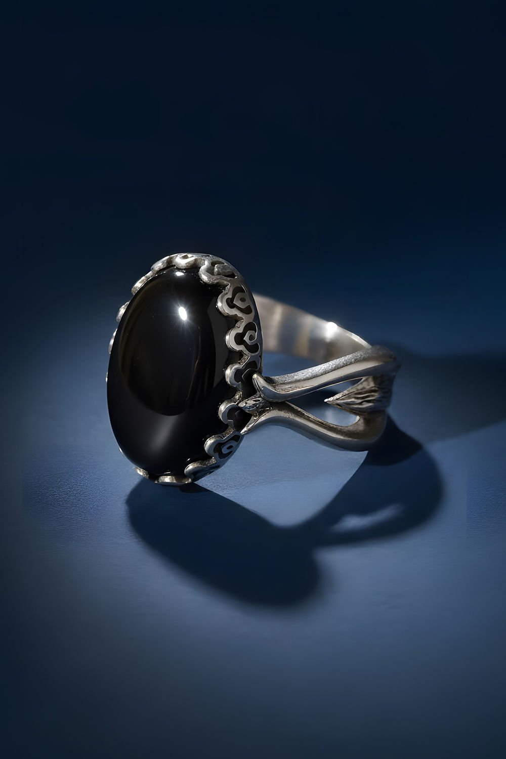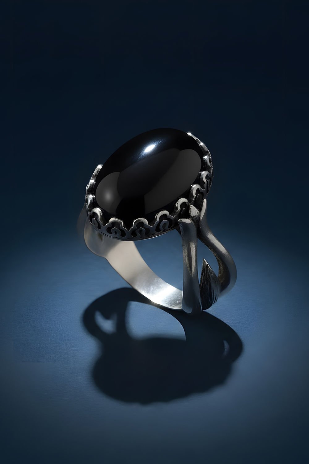 Lale Model Oniks Taşlı El İşi Gümüş Yüzük