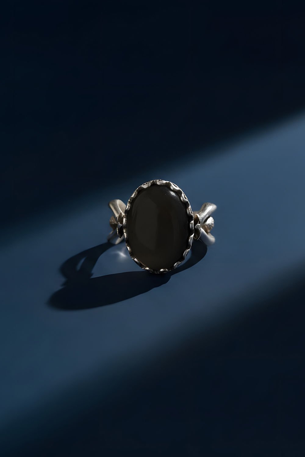 Lale Model Oniks Taşlı El İşi Gümüş Yüzük |