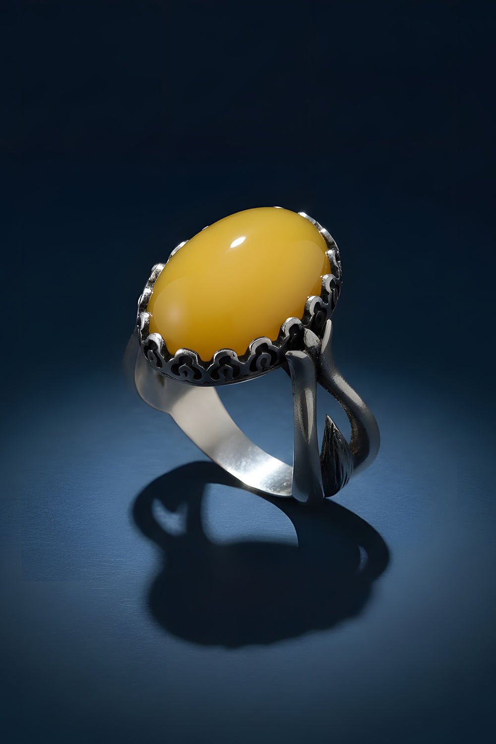 Lale Model Sarı Akik Taşlı El İşi Gümüş Yüzük |