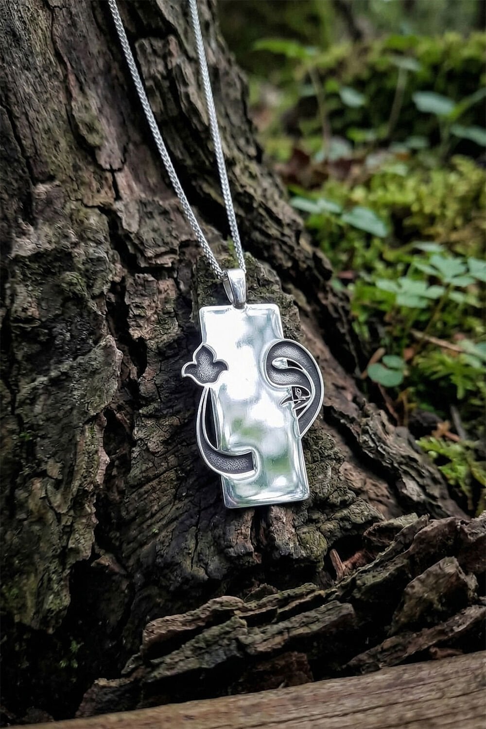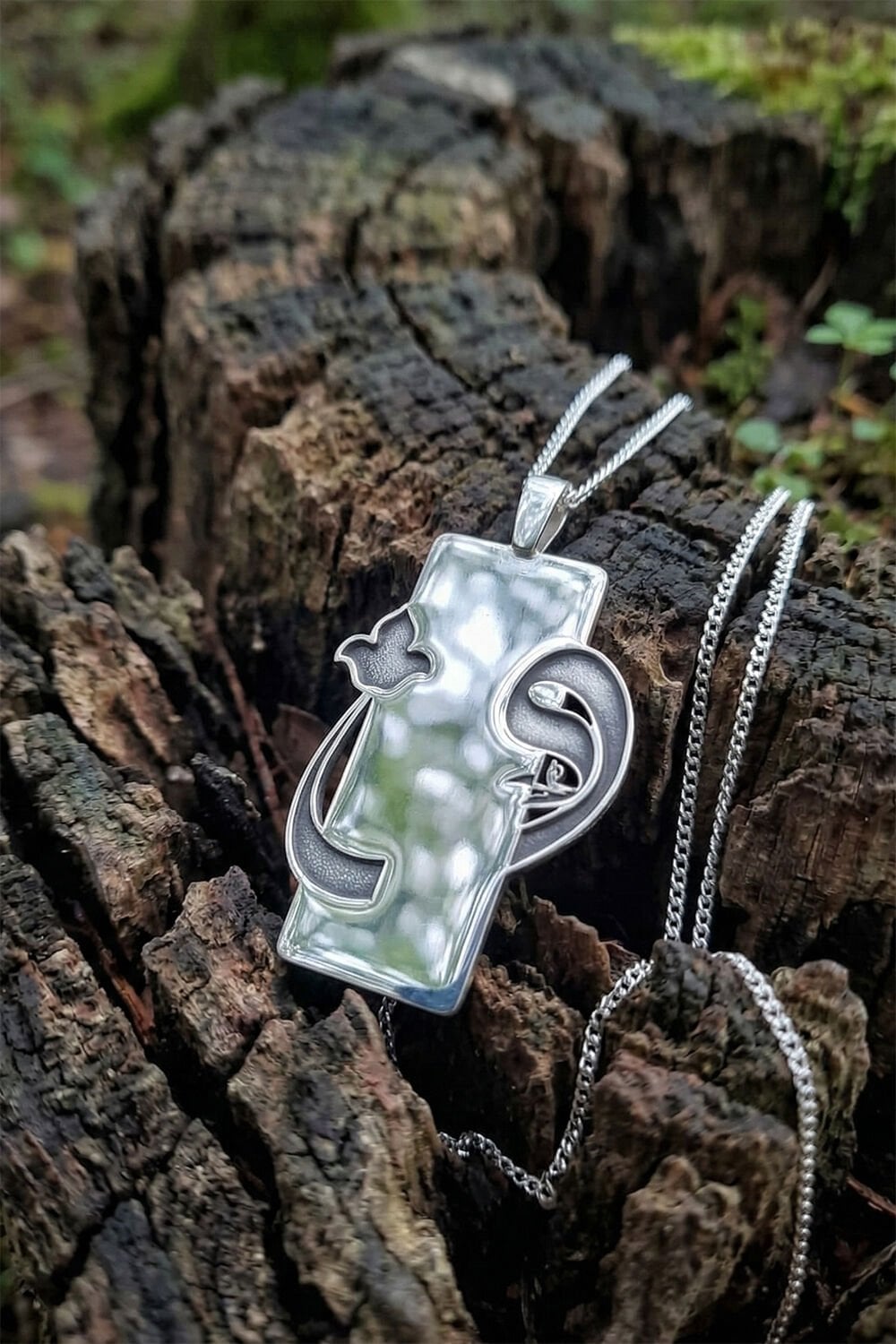 925 ayar gümüş kalitesiyle üretilen bu kolye, ince işçiliği ve oksitlenmiş detaylarıyla karakter sahibi bir duruş sergiler. Unisex tasarımı sayesinde hem kadınların hem de erkeklerin kombinlerine uyum sağlar.