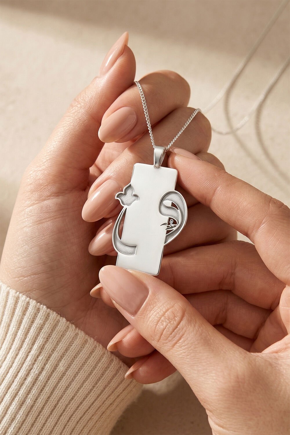 925 Ayar Gümüş Laleli Vav Model Unisex Kolye – Maneviyat ve Şıklık Bir Arada
