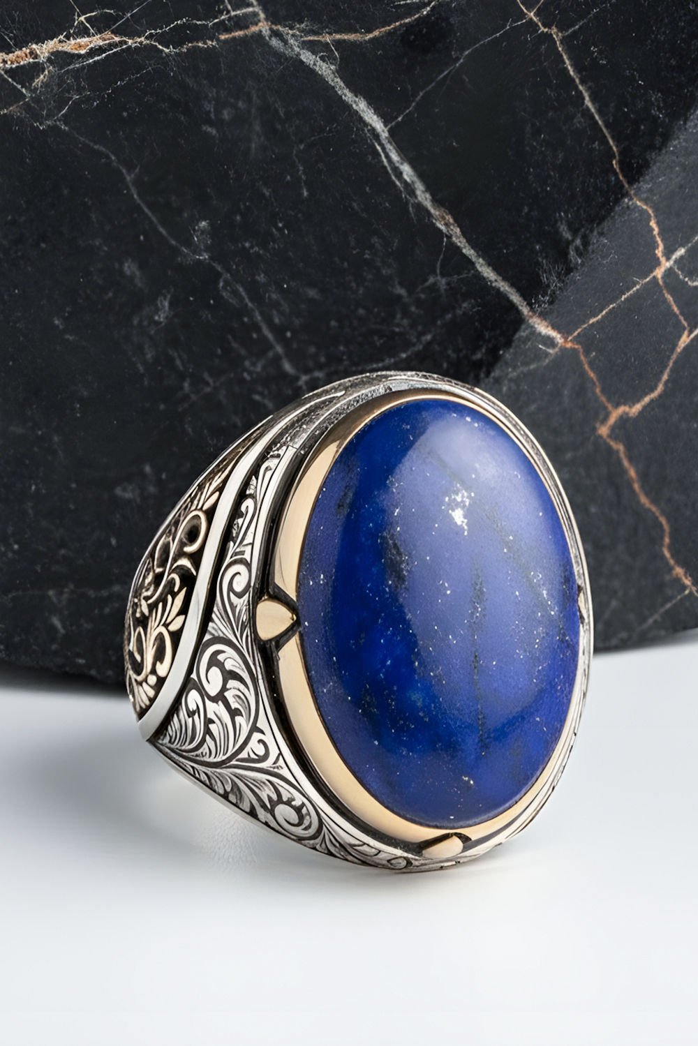 Lapis Taşlı Büyük Boy Gravür Sarmaşık Model Yüzük |