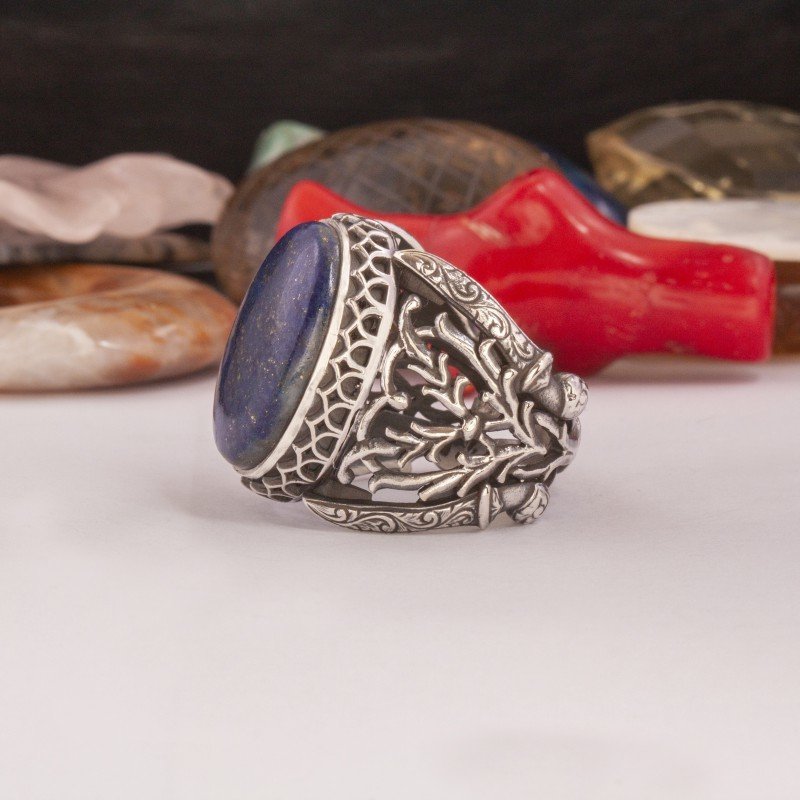 Bu doğal lapis lazuli taşlı gümüş erkek yüzük, estetik ve anlam arayan erkekler için mükemmel bir seçenektir. Her detayın özenle işlendiği bu yüzüğü keşfedin ve stilinize benzersiz bir dokunuş ekleyin!