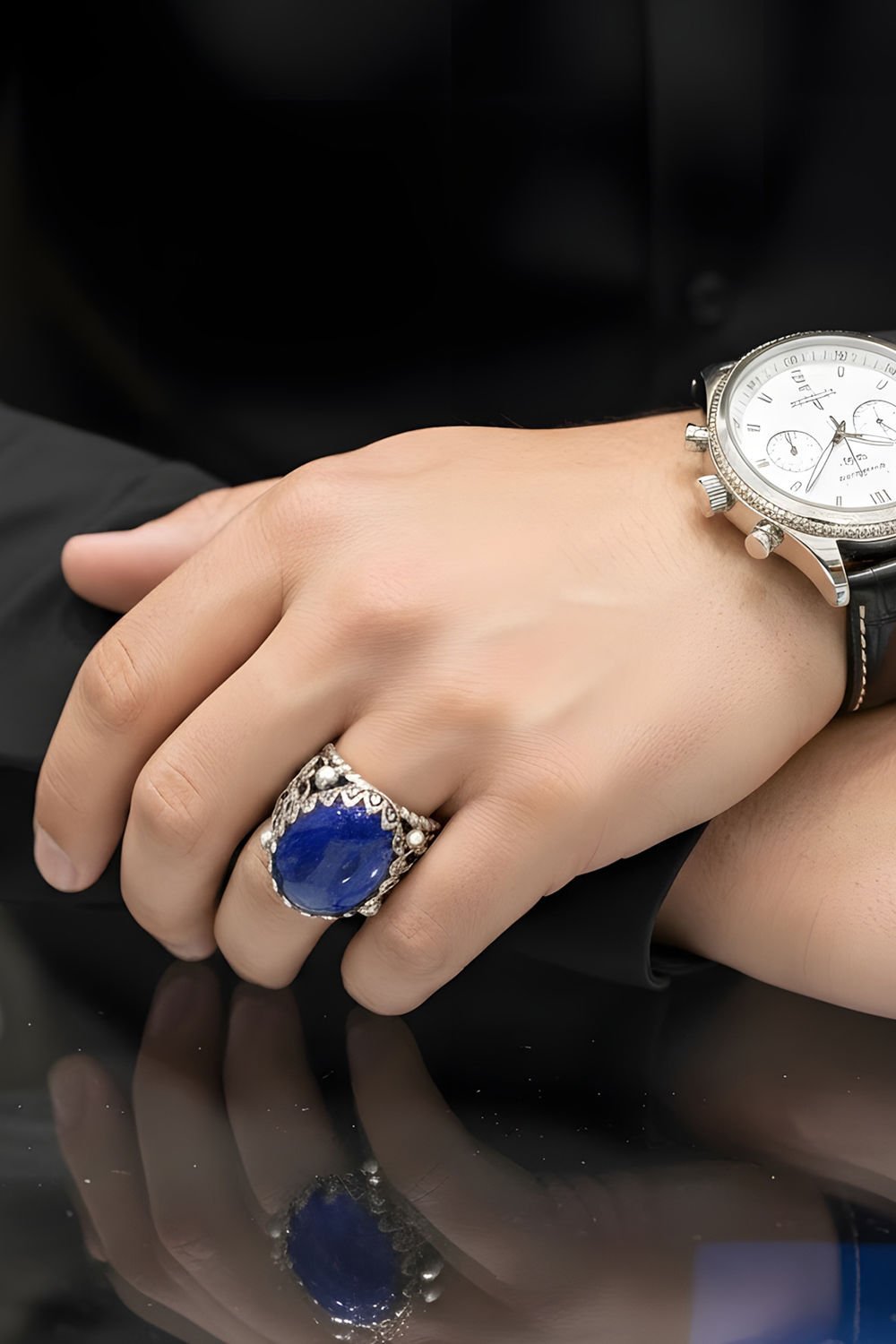 Bu özel erkek yüzük, benzersiz doğal lapis lazuli taşı ve usta el işçiliği ile tasarlanmıştır. Her detay özenle işlenmiş, bu yüzüğü estetik ve anlam bakımından eşsiz kılmaktadır.