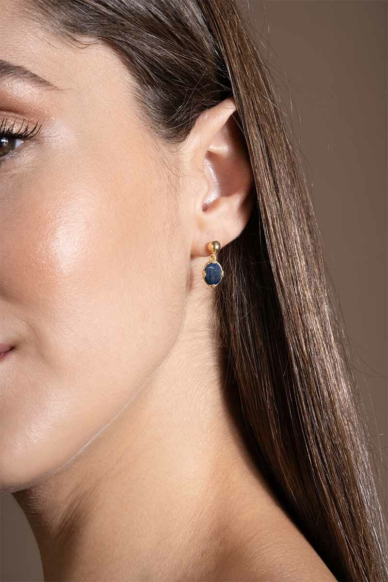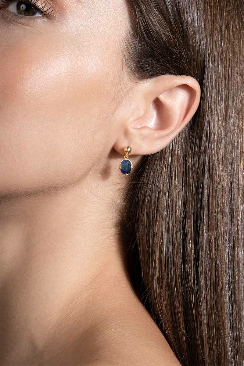 Lapis Lazuli Taşlı Minimal Gümüş Kadın Küpe Altın Rengi