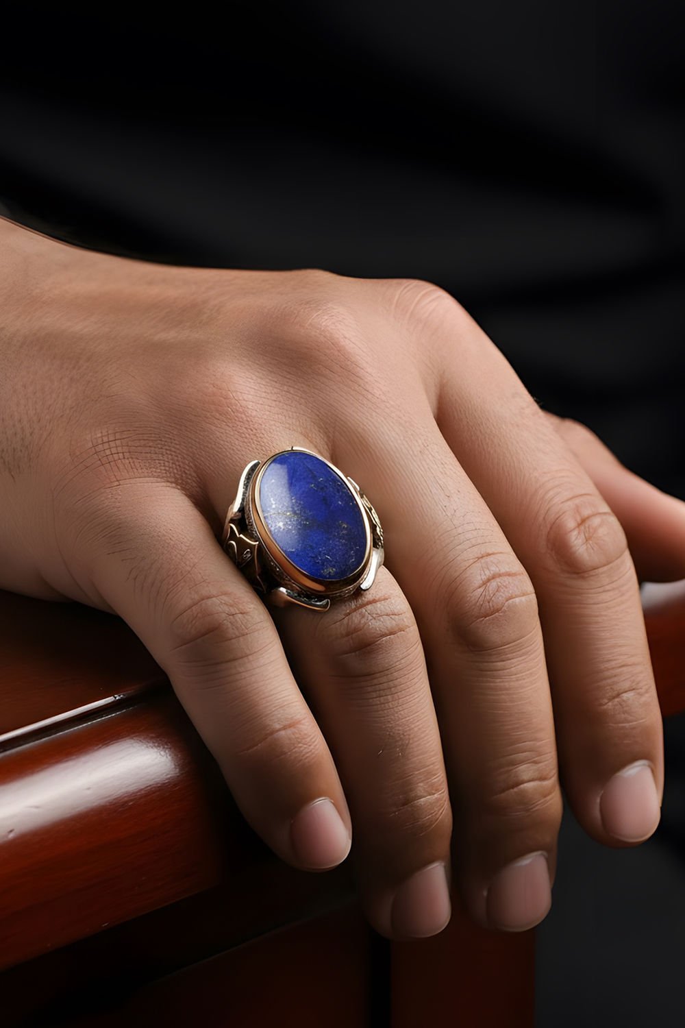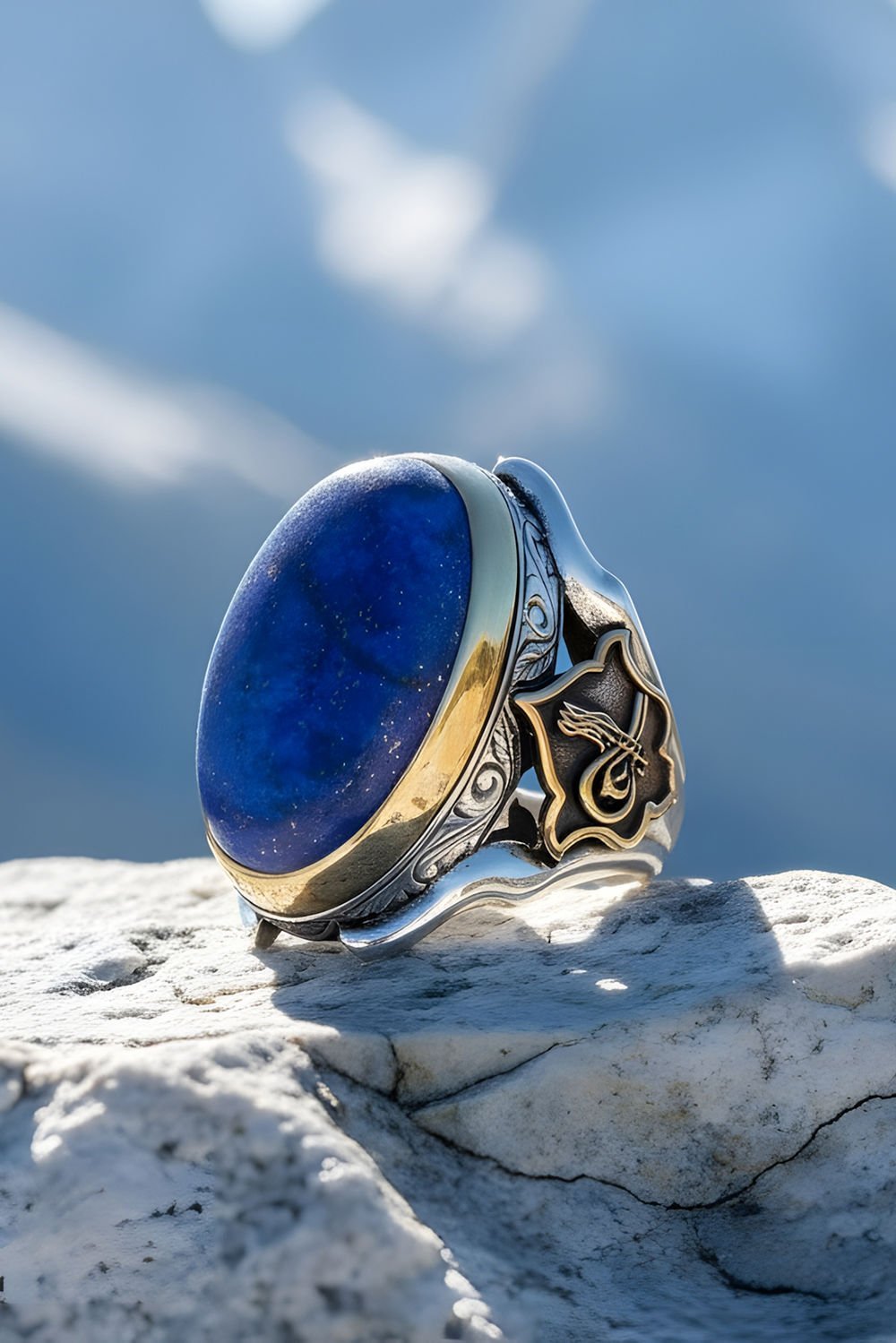Hakiki ve orijinal doğal taşlar kullandığımız yüzüklerin bu modelinde Lapis Lazuli taşını kullanıyoruz.
