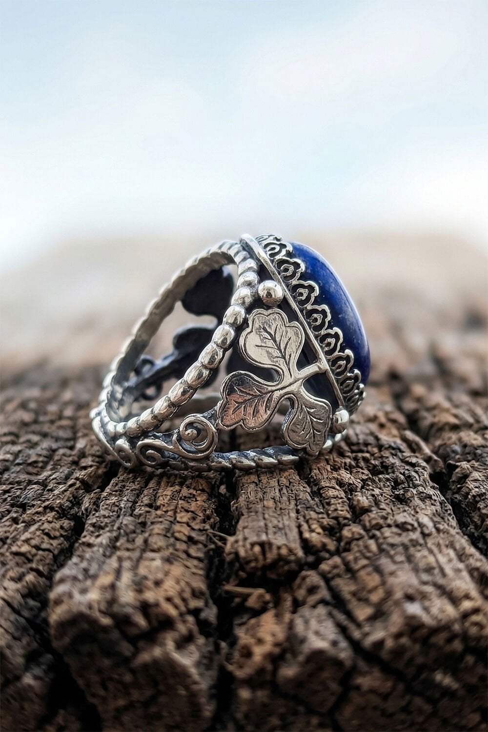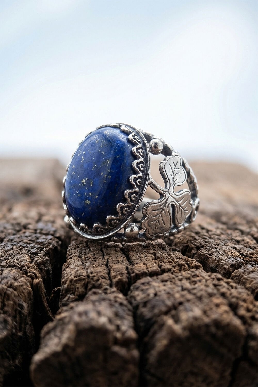 Doğanın en asil taşlarından biri olan Lapis Lazuli, usta ellerde hayat bulan yonca motifiyle birleşti. Tamamen el işçiliği ile üretilen bu özel gümüş erkek yüzüğü, sadece bir aksesuar değil, parmağınızda taşıyacağınız bir sanat eseridir. 925 ayar gümüşün kalitesi, Lapis Lazuli’nin kendine has altın parıltılı piritleri ile kusursuz bir uyum yakalıyor.