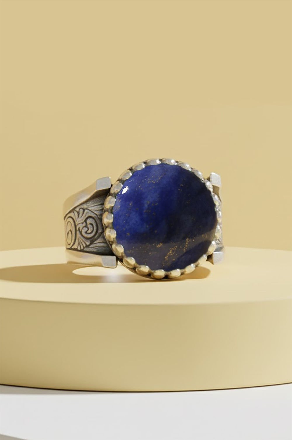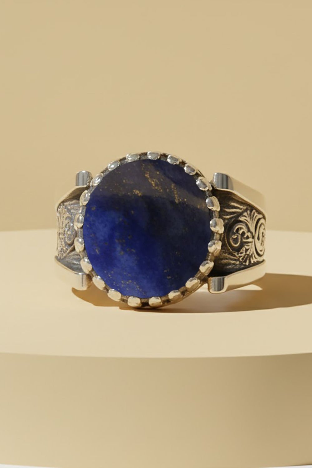 Hakiki ve orijinal doğal taşlar kullandığımız yüzüklerin bu modelinde Lapis Lazuli taşını kullanıyoruz.