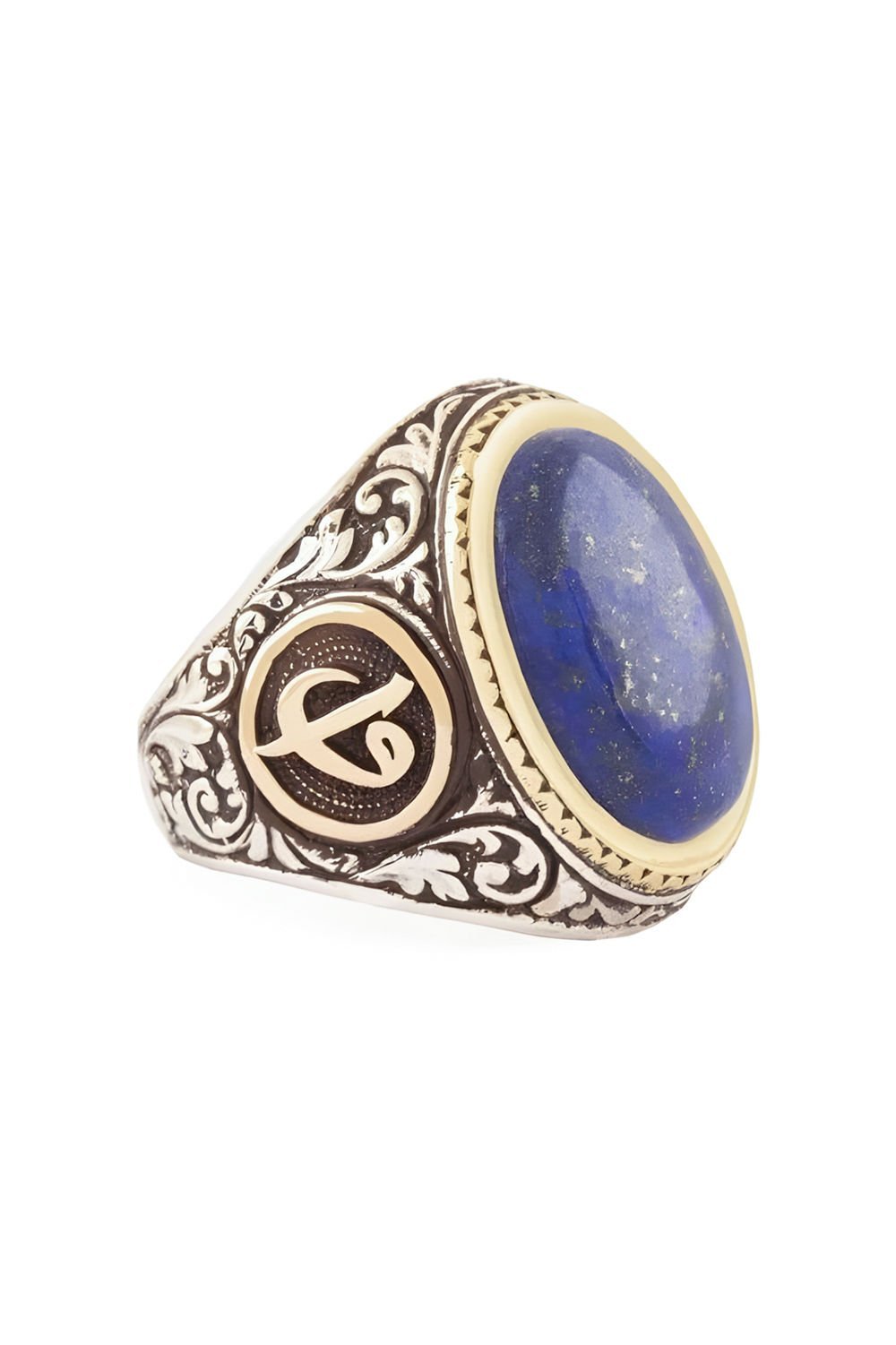 Lapis Taşlı Vav Elif Desenli Gümüş Yüzük |