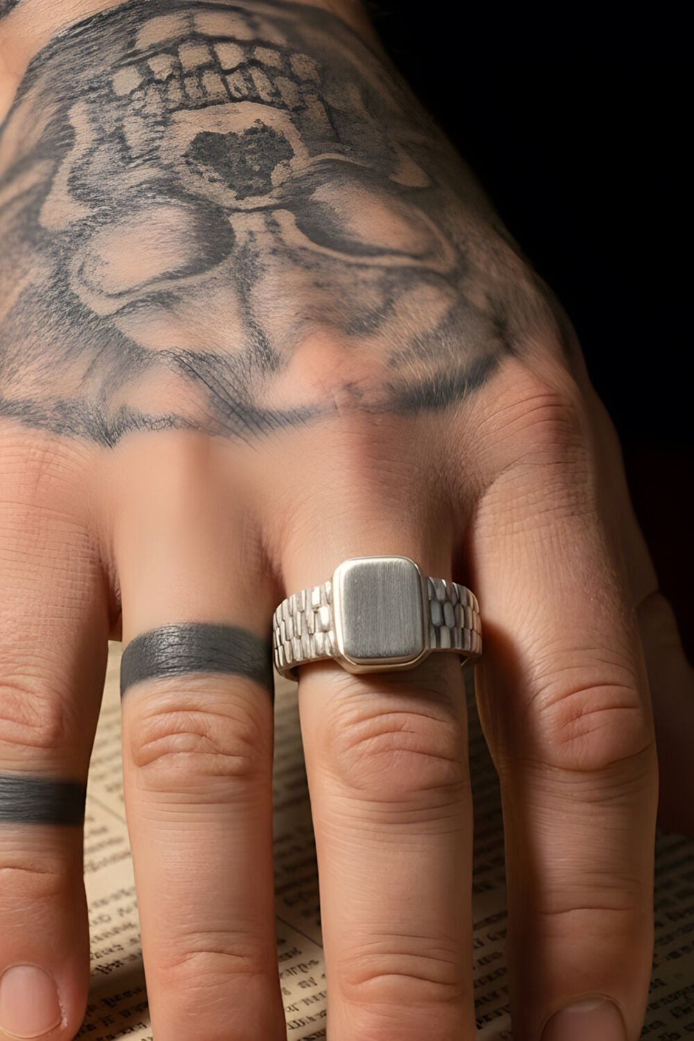 Modern Tasarımın Maskülen Dokunuşu: Mat Saat Kordonu Detaylı Gümüş Şövalye Yüzüğü