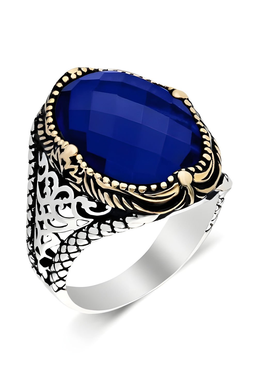 Mavi Zirkon Taşlı Gümüş Erkek Yüzük |