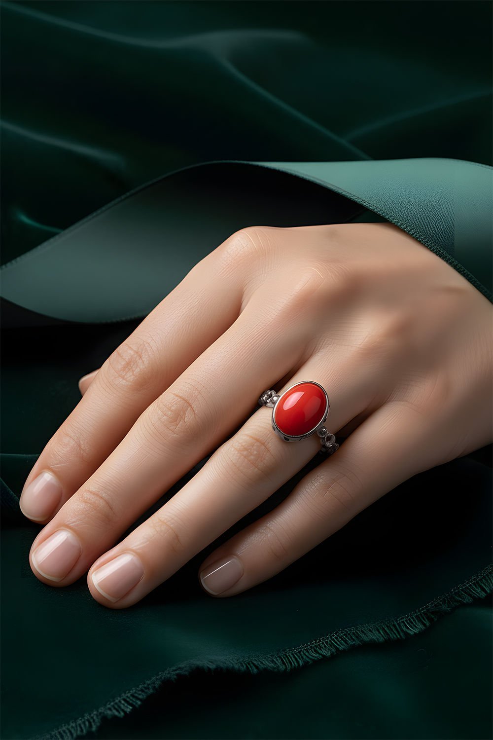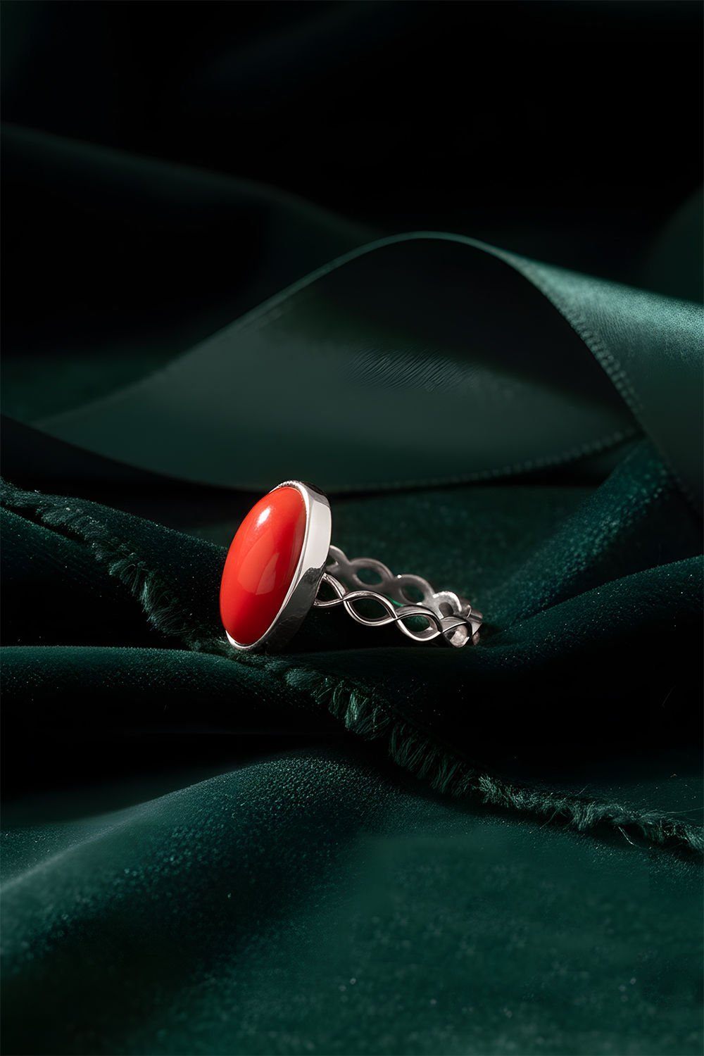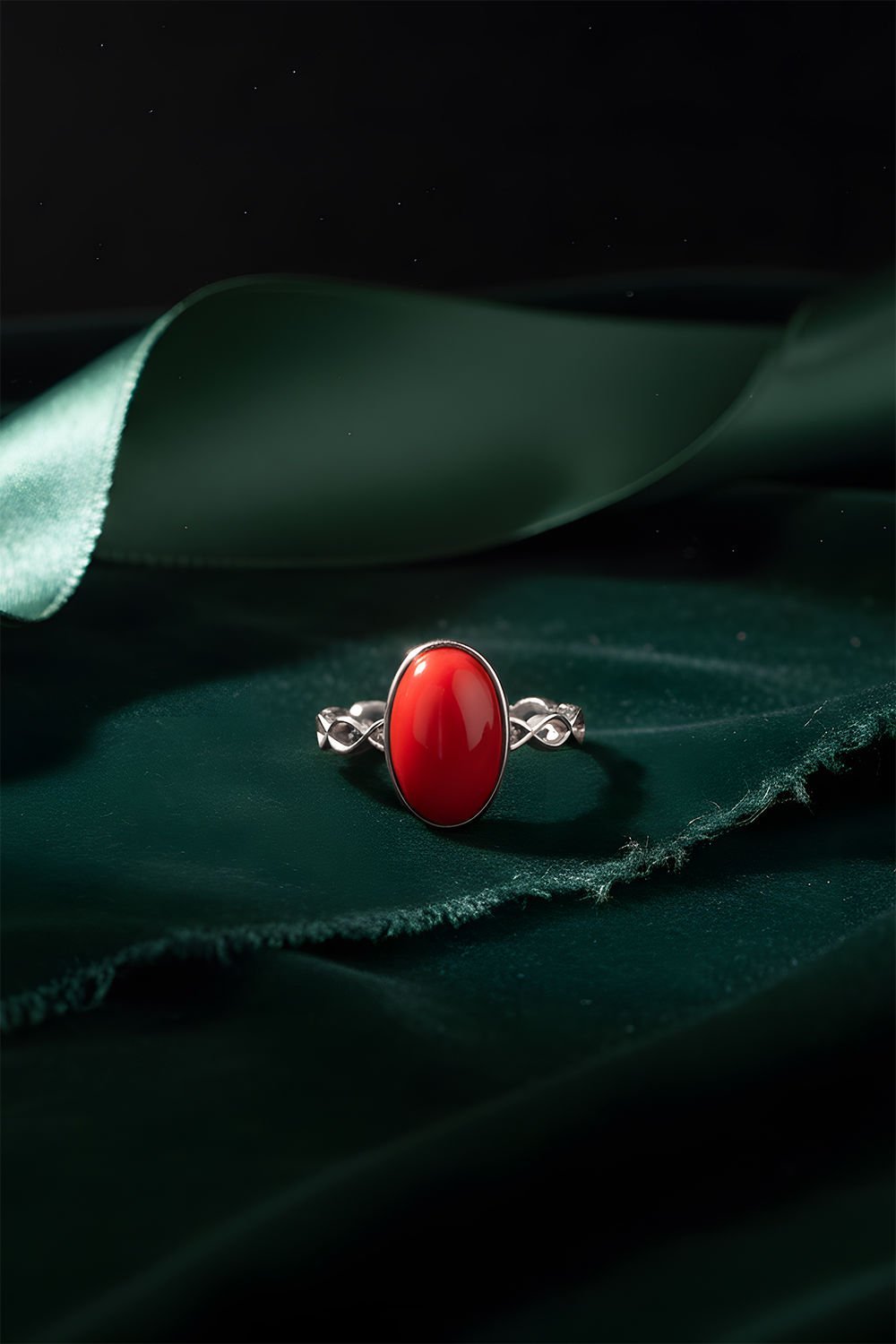 Mercan Taşlı El İşi Minimal Model Gümüş Yüzük
