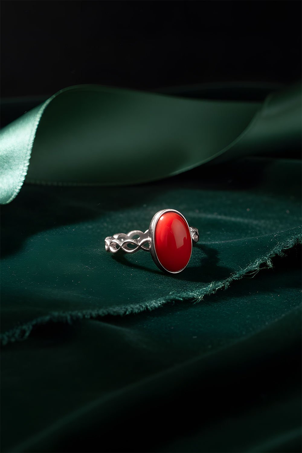 Mercan Taşlı El İşi Minimal Model Gümüş Yüzük |