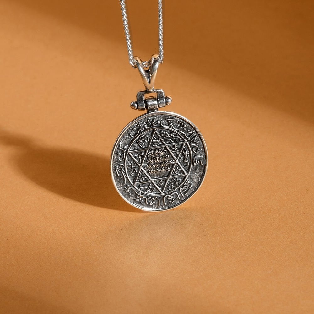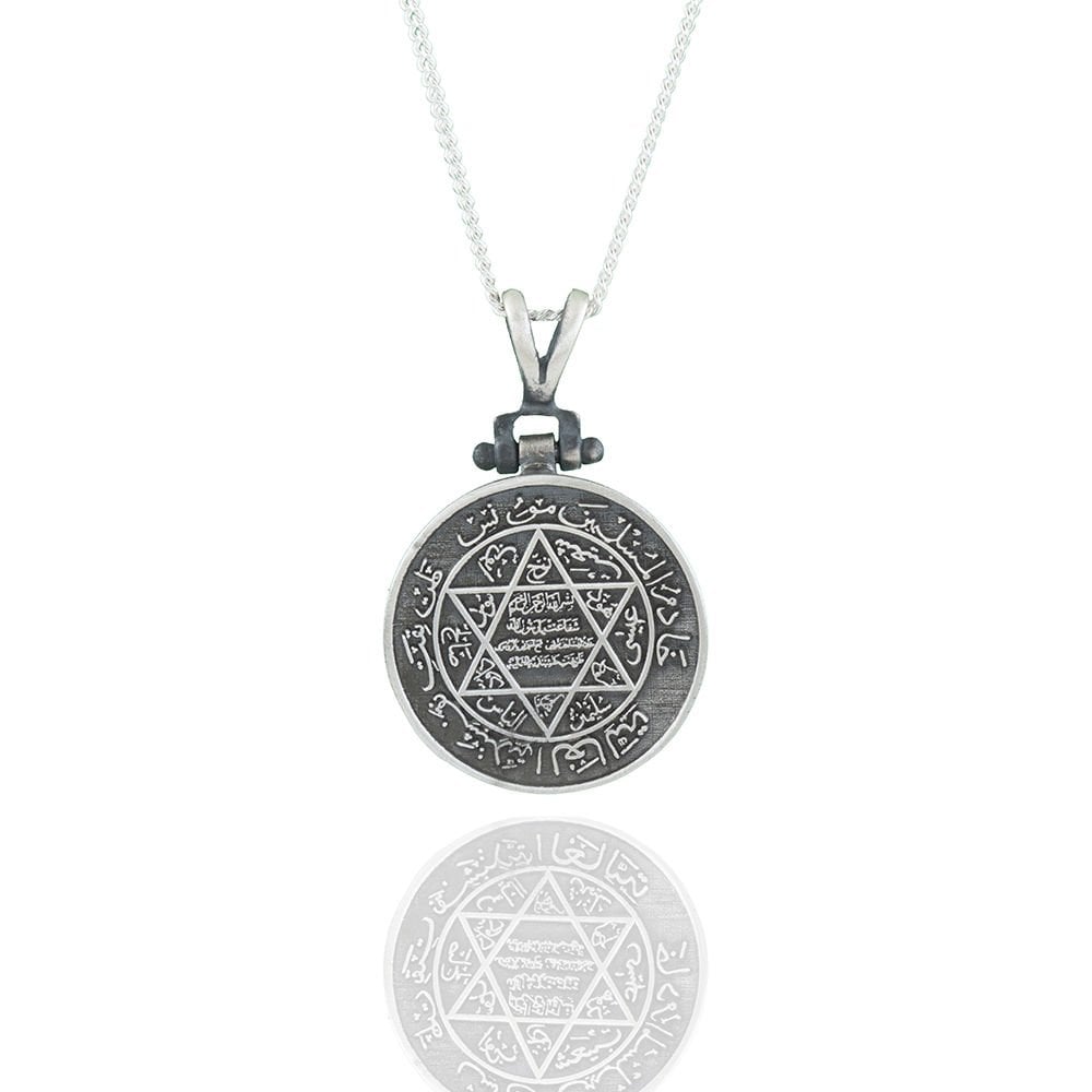 Hz. Süleyman (a.s)'ın mührü olduğu rivayet edilen "altı köşeli yıldız" modeli olarak da bilinen bu kolye, 925 ayar gümüş ve kendi atölyemizin işçiliği ile üretilmiştir. Sipariş verildikten sonra 1-2 iş günü içerisinde kargoya verilir.
