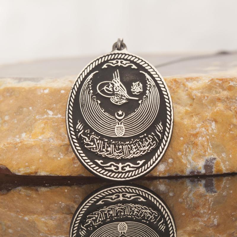 "Ey iman edenler! Allah’a itaat edin, peygambere itaat edin, sizden olan ülü’l-emre de. Eğer bir hususta anlaşmazlığa düşerseniz -Allah’a ve âhirete gerçekten inanıyorsanız- onu, Allah’a ve peygambere götürün. Bu, elde edilecek sonuç bakımından hem hayırlıdır hem de en güzelidir." Kolye, 925 ayar gümüş ve kendi atölyemizin işçiliği ile hazırlanmıştır. Sipariş verildikten sonra 1-2 iş günü içerisinde kargoya verilir.