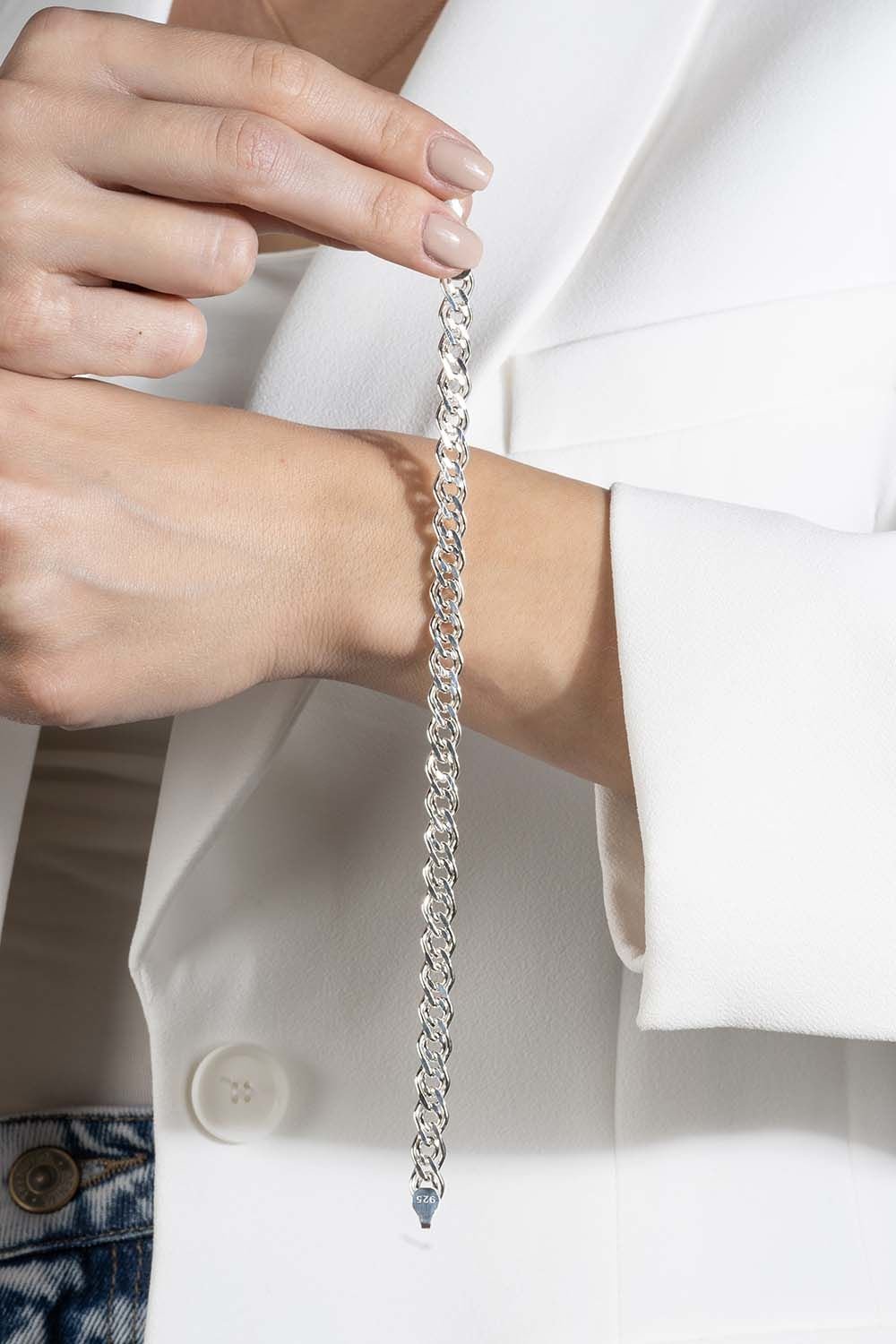 Farklı renklerde (silver, gold, rose) hazırlayabildiğimiz, klasik desenlere sahip gümüş zincir bileklik modelimiz. Bileklik, 925 ayar gümüş ile imal edilmiştir. Sipariş verildikten sonra 1-2 iş günü içerisinde kargoya verilir.
