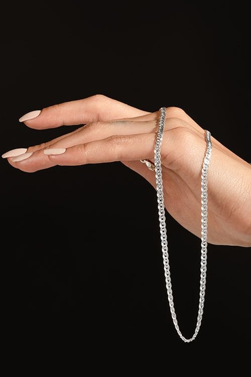 Farklı renklerde (silver, gold, rose) hazırlayabildiğimiz, klasik desenlere sahip gümüş zincir modelimiz. Zincir, 925 ayar gümüş ile imal edilmiştir. Sipariş verildikten sonra 1-2 iş günü içerisinde kargoya verilir.