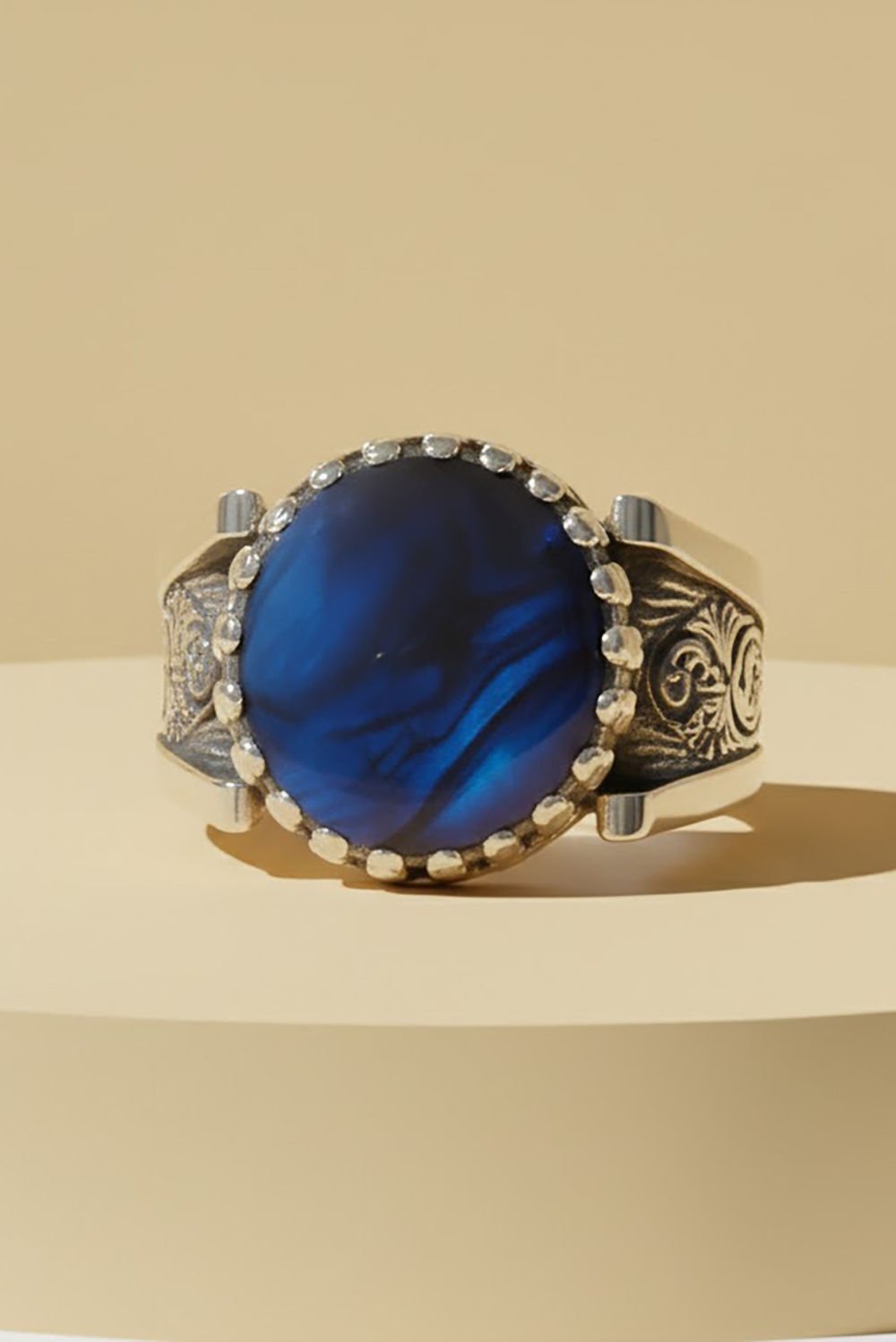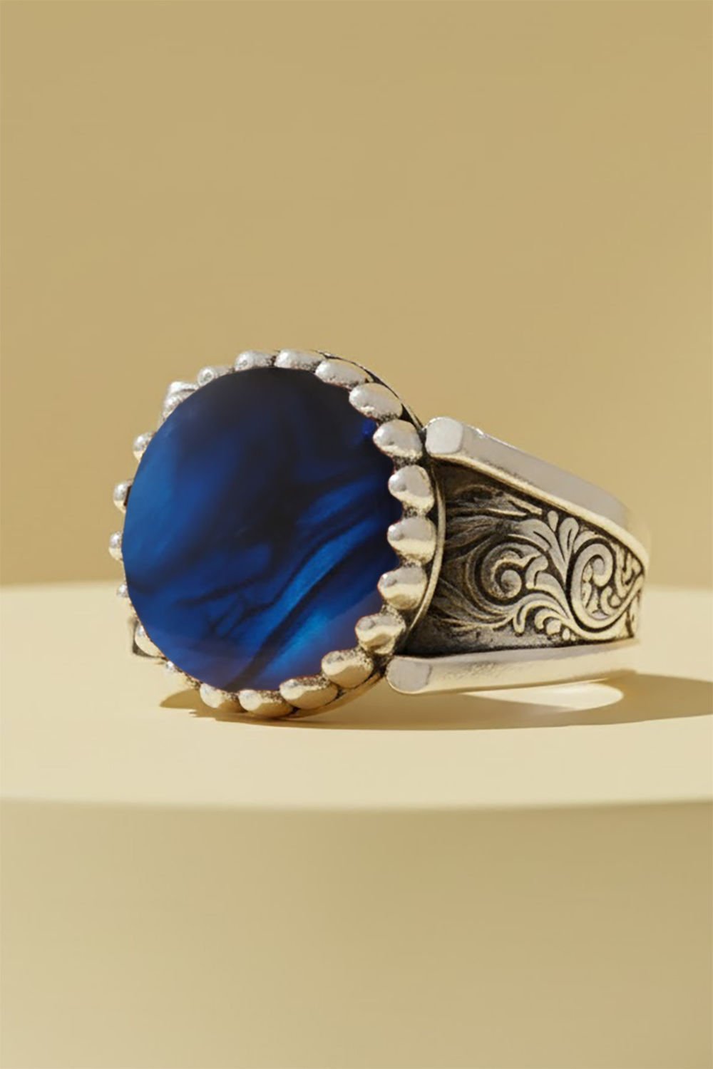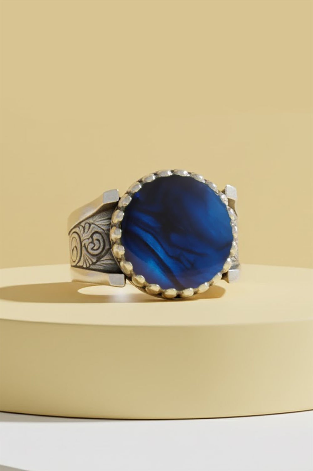 Hakiki ve orijinal doğal taşlar kullandığımız yüzüklerin bu modelinde Okyanus Sedefi taşını kullanıyoruz.
