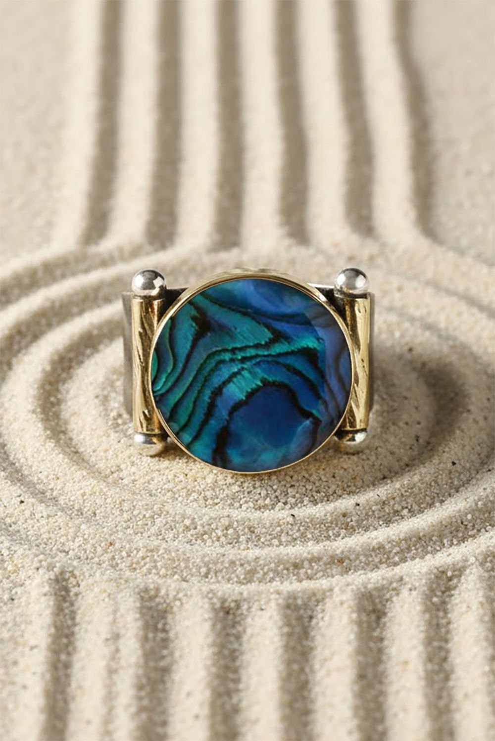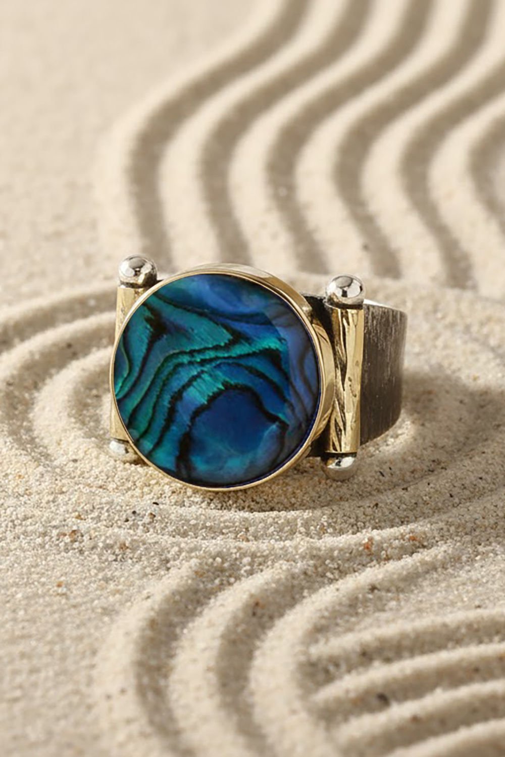Hakiki ve orijinal doğal taşlar kullandığımız yüzüklerin bu modelinde Okyanus Sedefi taşını kullanıyoruz.