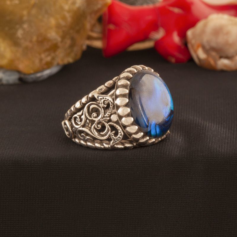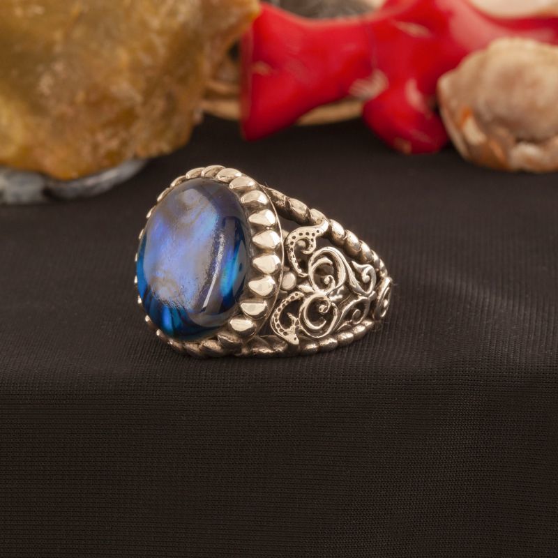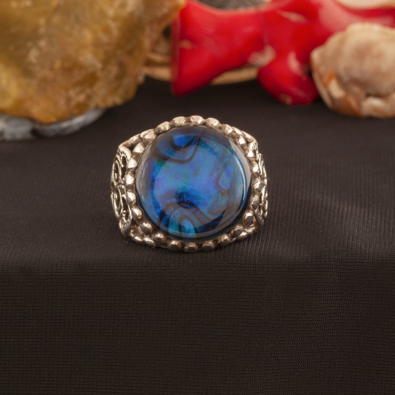 Okyanus Sedefi Taşlı El İşi Gümüş Yüzük |