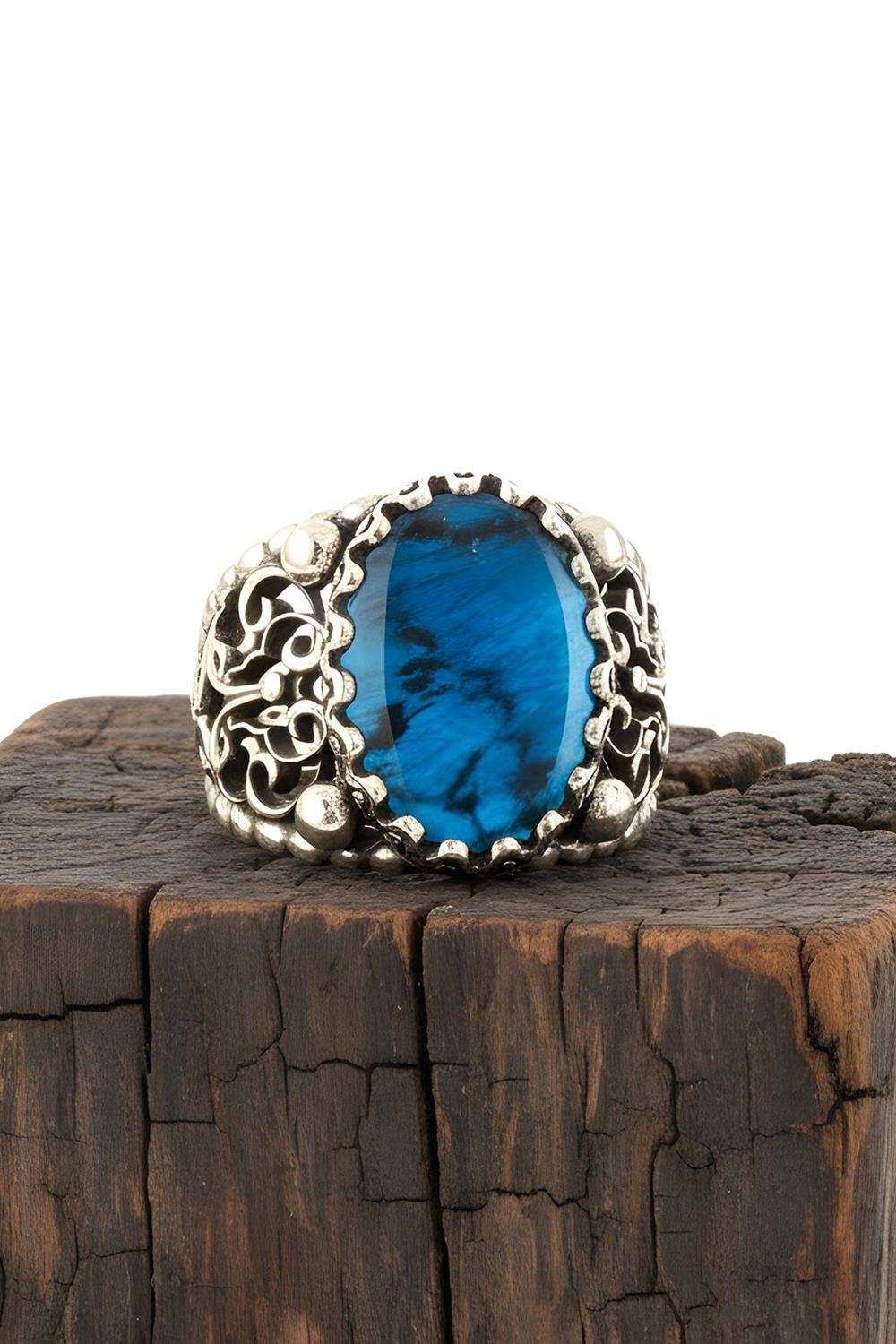 Okyanus Sedefi Taşlı El İşi Gümüş Yüzük |
