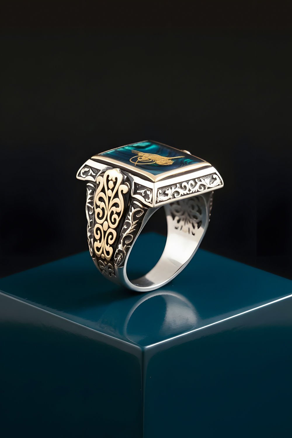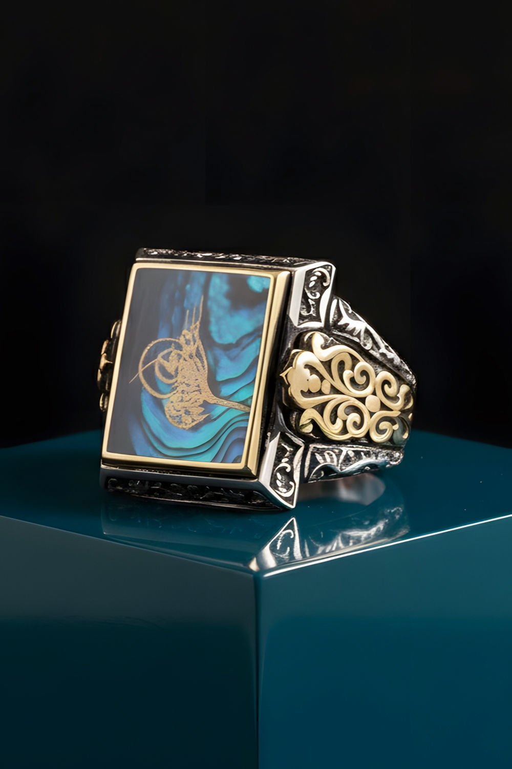 Okyanus Sedefi Tuğra Dikdörtgen Alemdar Yüzük |