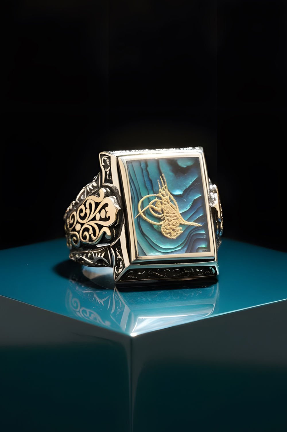 Okyanus Sedefi Tuğra Dikdörtgen Alemdar Yüzük
