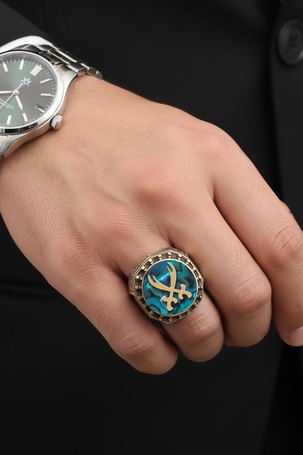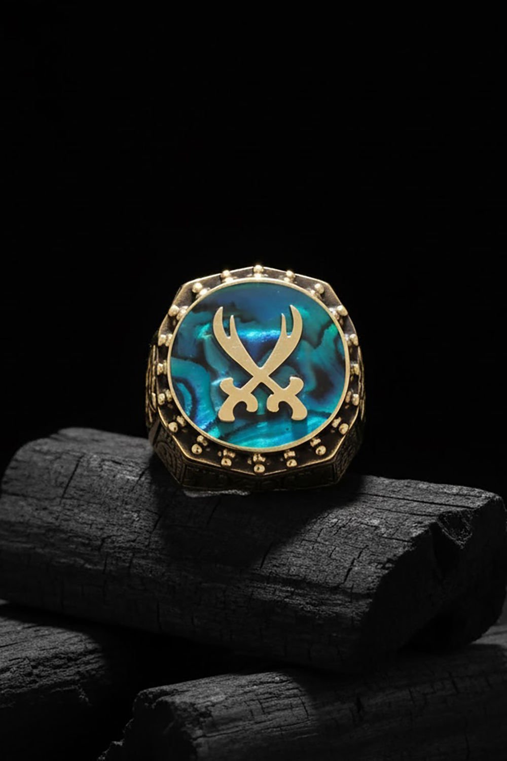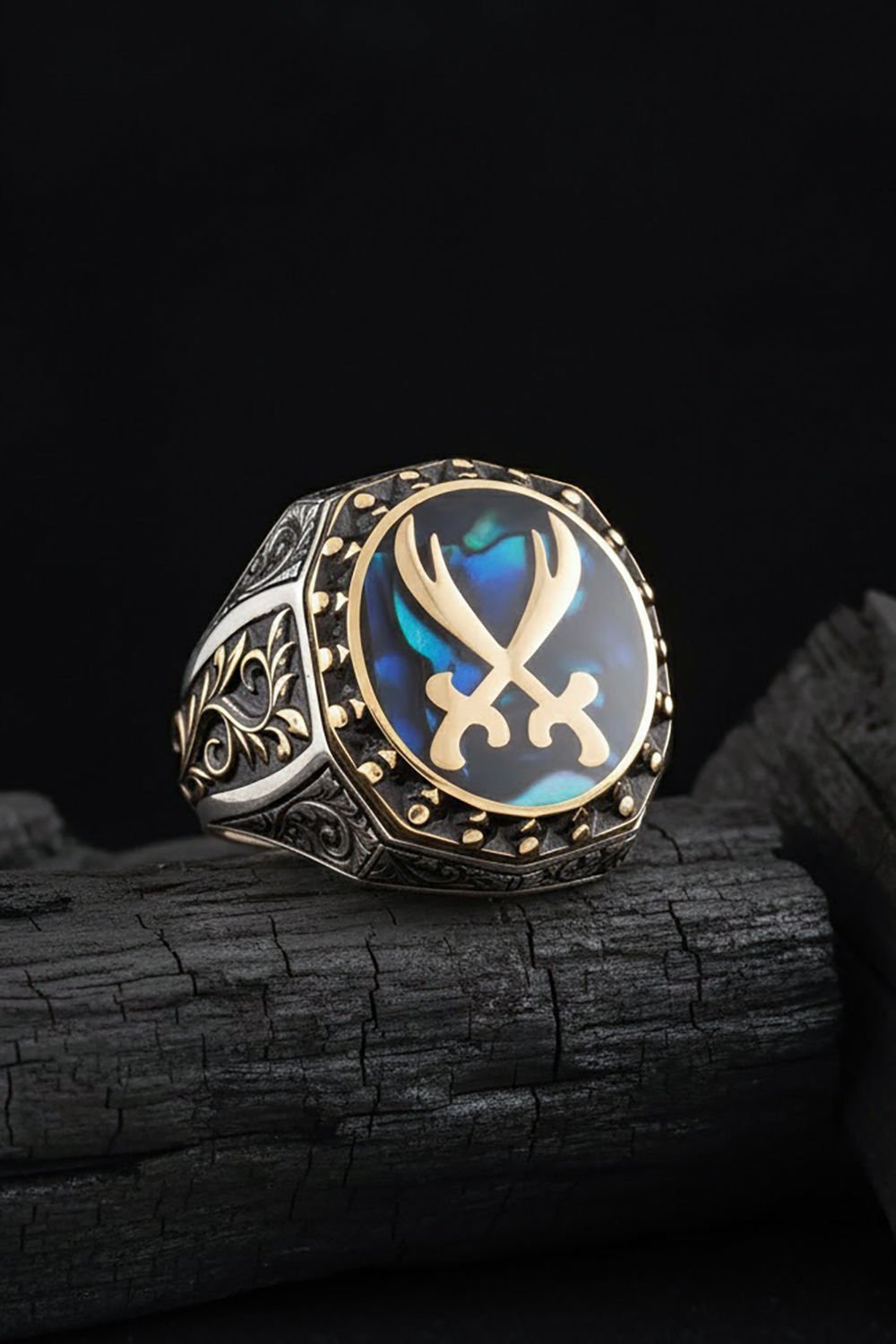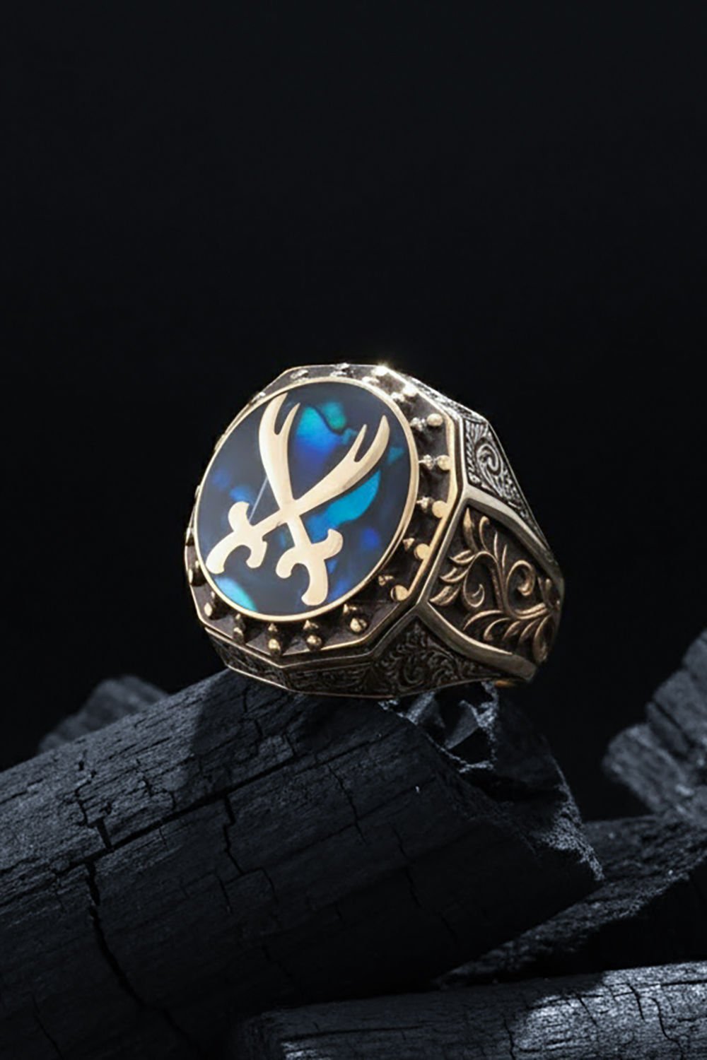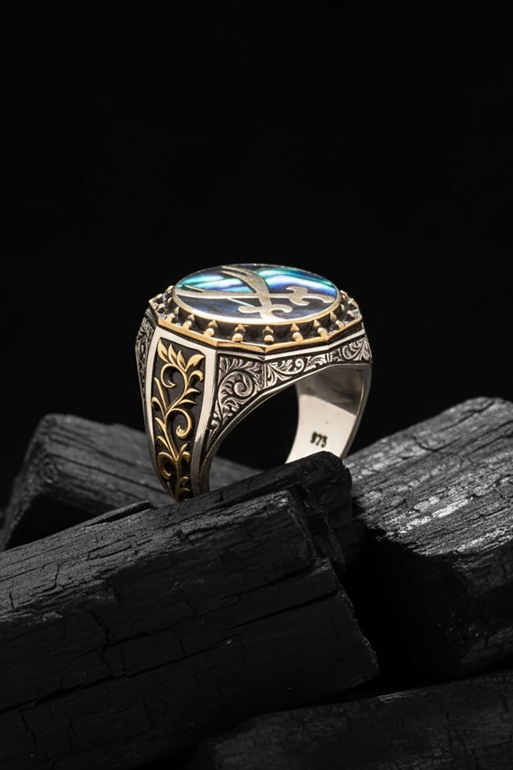 Okyanus Sedefi Zülfikar Gravür Sarmaşık Yüzük