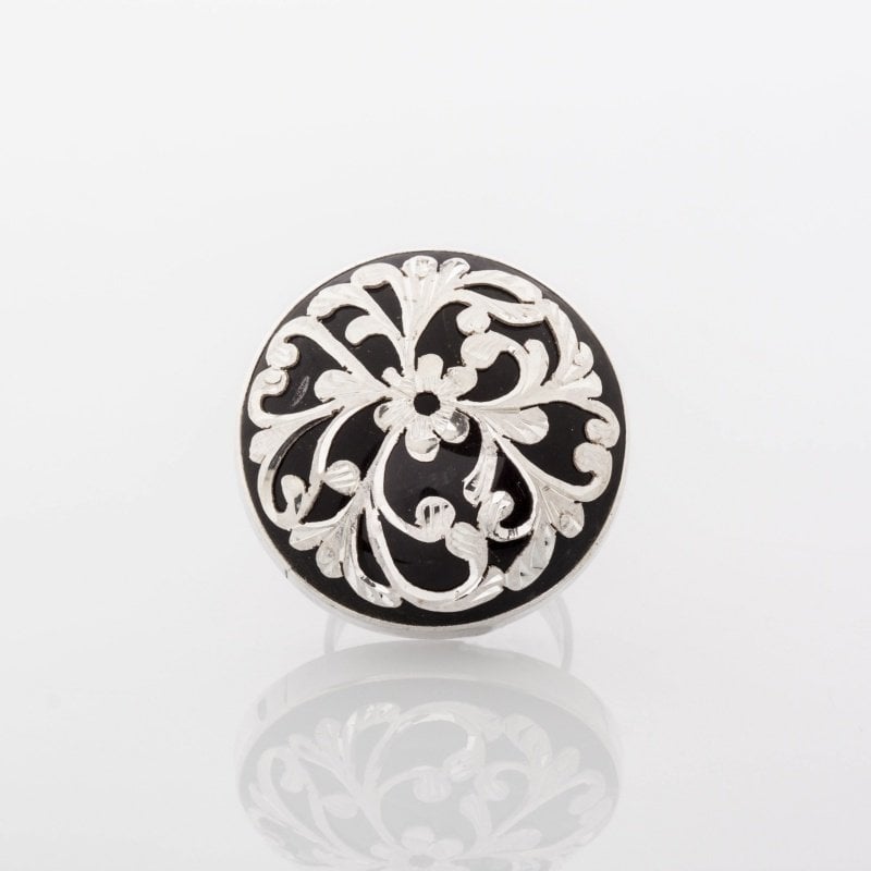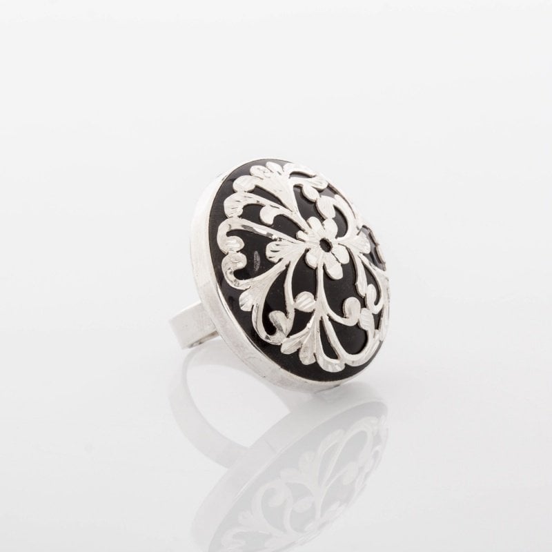 Oltu Taşlı Erzurum Kalem İşlemeli Gümüş Yüzük