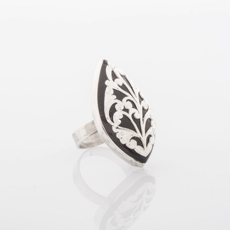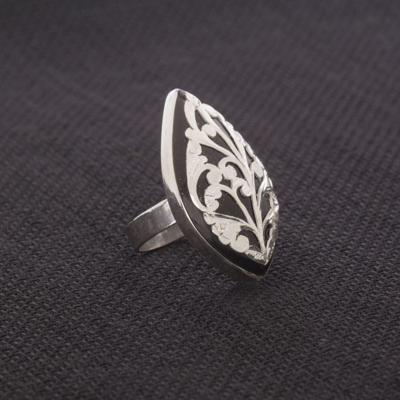Oltu Taşlı Erzurum Kalem İşlemeli Gümüş Yüzük |