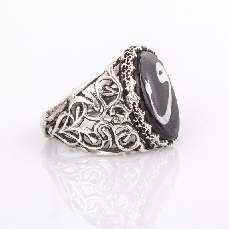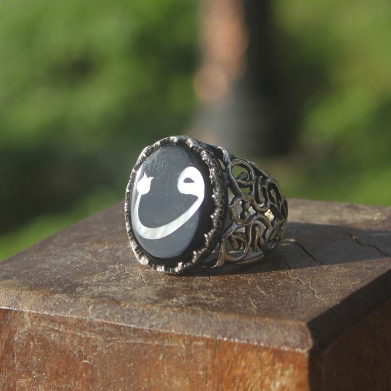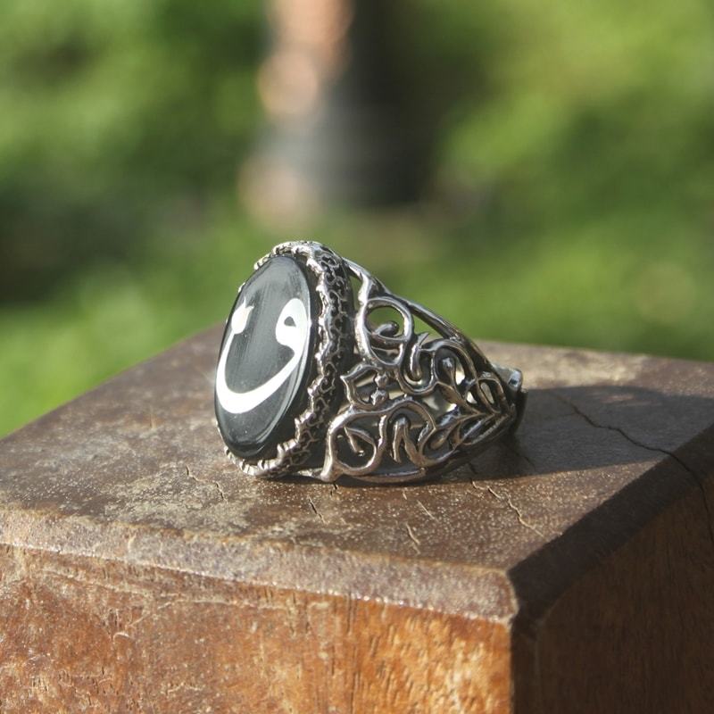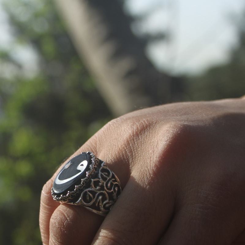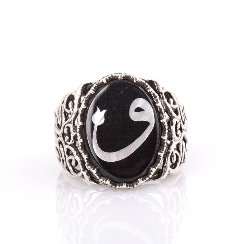 Oltu Taşı Sedef Kakma Vav Harfi El İşi Yüzük