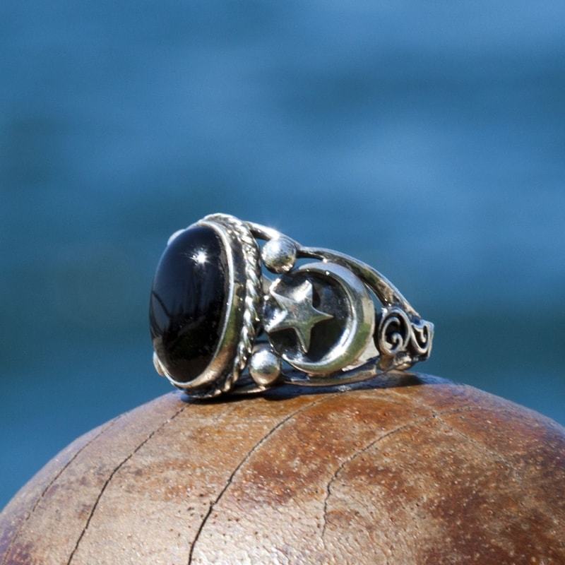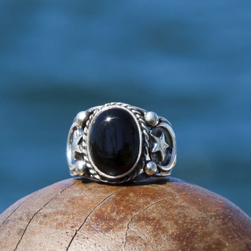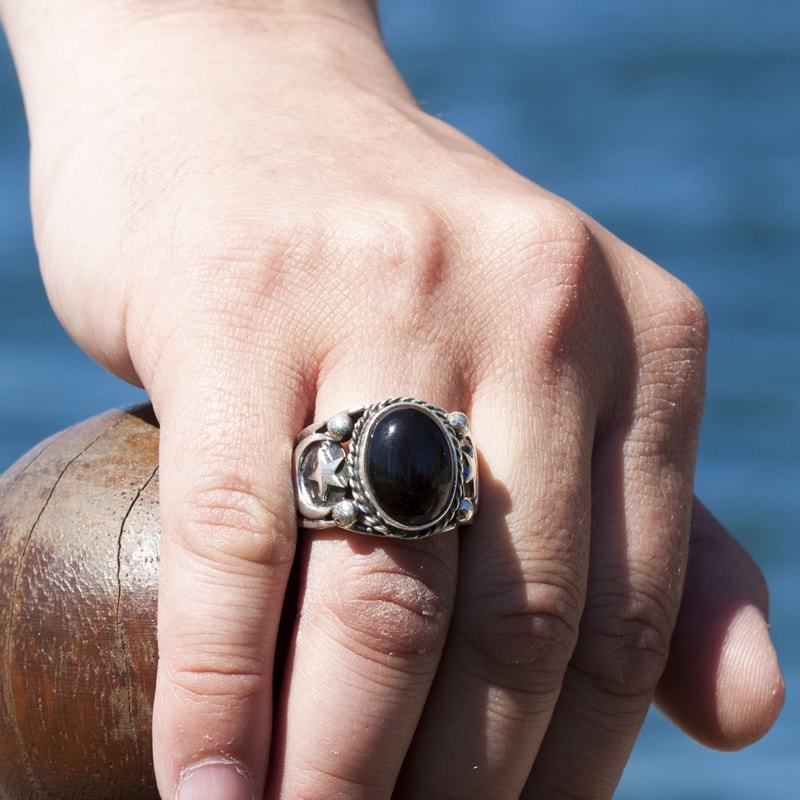 Oniks Taşlı El İşi Gümüş Yüzük |