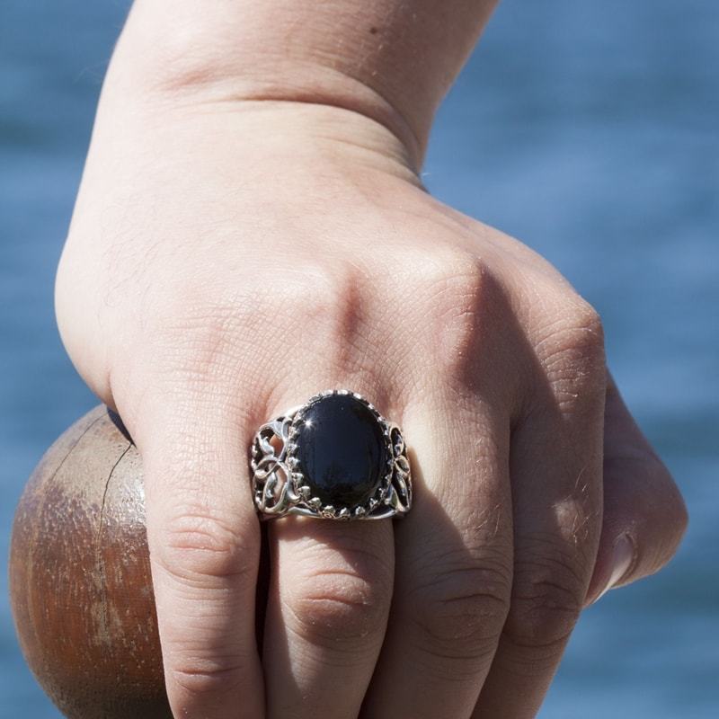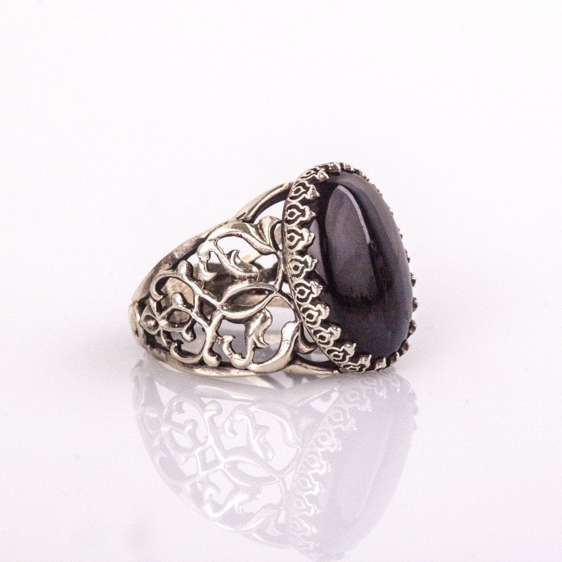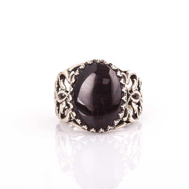 Oniks Taşlı El İşi Gümüş Yüzük |